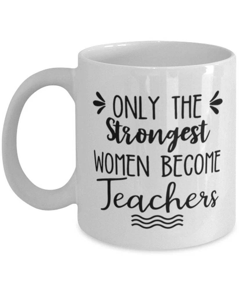 Teacher Graduation Funny Coffee Mug Only The Strongest Women Become Teachers Product Details.. This high quality 11oz. ceramic white mug has a premium hard coat that provides crisp and vibrant color reproduction sure to last for years. Perfect for all hot & cold beverages. The highest quality printing possible is used. It will never fade no matter how many times you wash it. Material: 100% Ceramic. Print both sides. Dishwasher and Microwave Safe. High Gloss + Premium White Finish. Printed in the U.S.A. Personalized & Custom. We support personalized and custom mug to add custom, when placing an order, you can add notes to the "order note" in shipping address section. Also you can contact us directly via message. Shipping Info. Ready to ship in 1 to 2 business days, All products are made-to-order and proudly printed in the United States. Shipped by USPS and DHL, You will receive your order in 5-7 days. Replace & Refund. All products are defective during shipping broken, chipped will be replaced free of charge. You are not satisfied with the product, we will refund 100% money to you. If any other issues arise, please do not hesitate to message, we would be more than happy to assist you.