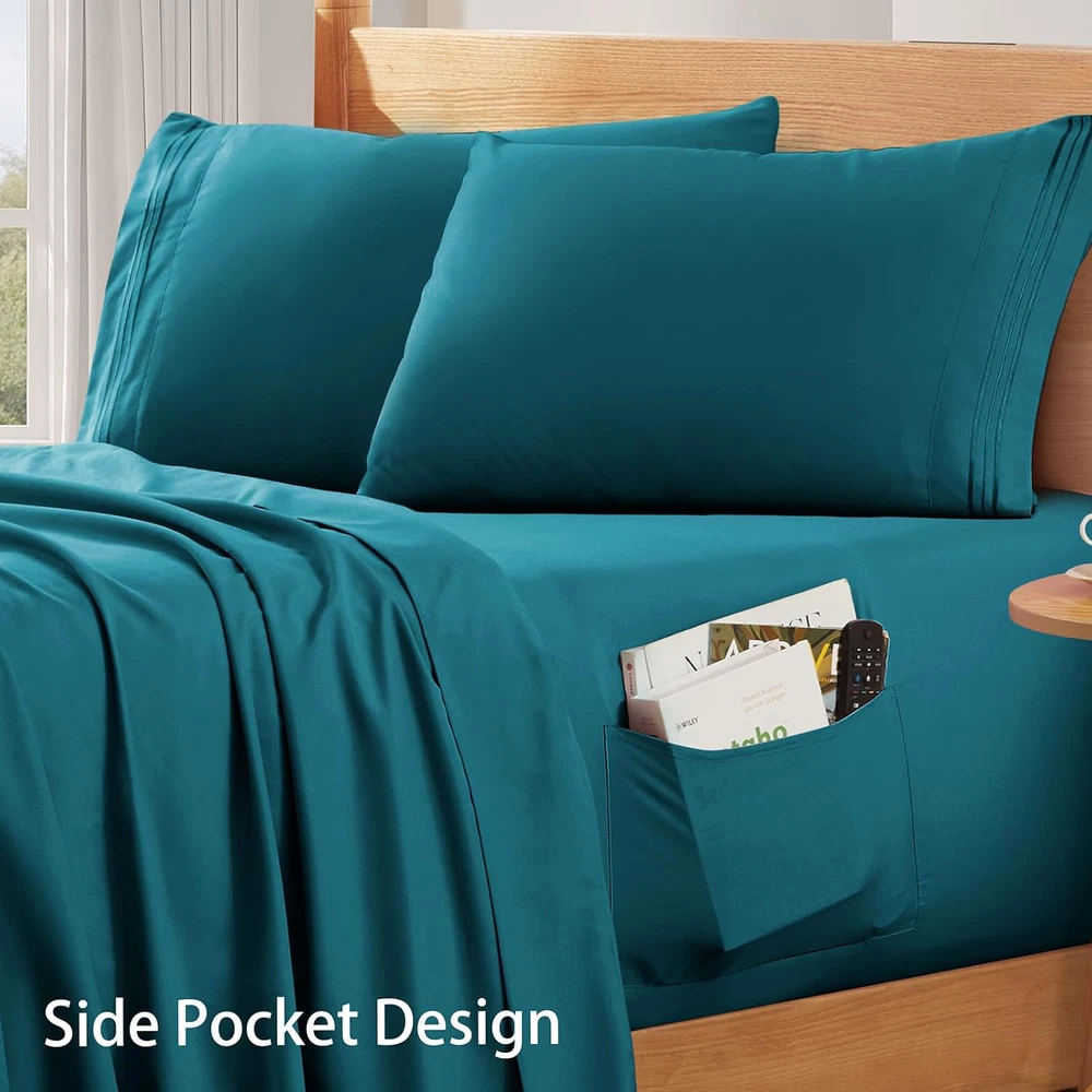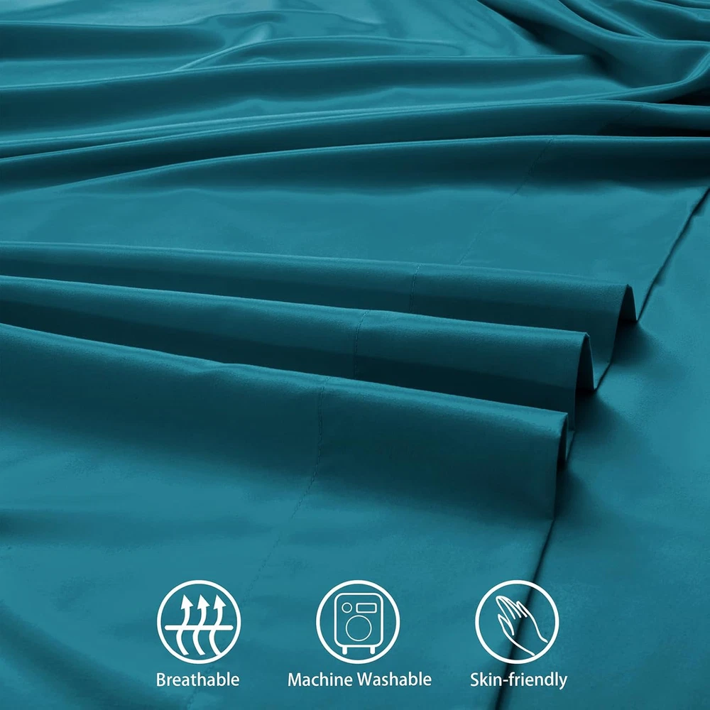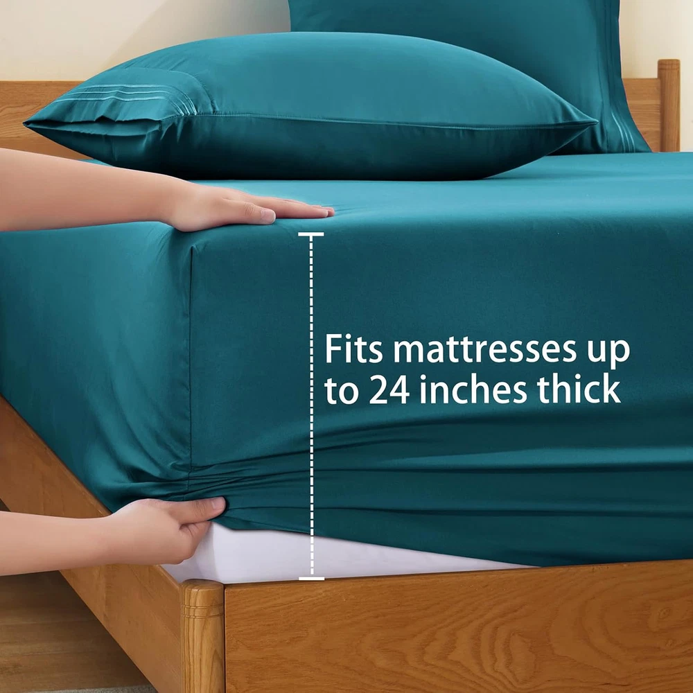 Fast Shipping Great Customer Support Satisfaction Guaranteed DESCRIPTION Shipping Shipping Shipping All domestic packages are shipped for Free (Unless other shipping method was selected during the checkout) Most items ship and arrive much sooner than the estimate delivery date. Usually within 2-3 days from payment. However, we have longer estimates to compensate for the occasional delay or supply chain breakdown. We do not accept P.O. BOXES - PLEASE PROVIDE A PHYSICAL ADDRESS Return Return Return In the event that you would like to return your purchase, we allow returns that are processed within the defined return date (the return date is to be found in the return policy/shipping and handling section) Please contact us for a return authorization and the return shipping address. Payment Payment Payment PayPal is our preferred method of payments it's the quickest, easiest and most secure way to pay for your goods or services online. PayPal offers buyer and seller protection should there be a problem. If you do not have a PayPal account, to get started and buy your first item with us is very easy. Simply click on the 'Buy It Now' button and follow the eBay checkout steps. Select PayPal as the payment method you then will be given the chance to enter your card details in to PayPal's secure checkout in order to pay for your order. Once the payment has been made, you will then be given the opportunity to make your own PayPal account to make paying for your items in the future very easy. Should there be a problem with payment please do let us know. Feedback Feedback Feedback Customer satisfaction is very important to us. If you have any problem with your order,please contact us and we will do our best to make you satisfied, please do not leave a negative feedback before we resolve your problem. We guarantee that your issue will be solved quickly. As long as you are happy with your purchase of , please leave us a positive feedback. Your feedback is very important to us it affects our search placement on eBay. We will leave a positive feedback for you in return automatically once we receive your feedback. Contact Us Contact Us Contact Us If you have any queries, please contact us via ebay. We usually respond within 24 hours on weekdays. Thank you for visiting our ebay store! Perfect Fit for Deeper Mattresses - The SiinvdaBZX Extra Deep Pocket Queen Sheets are specifically designed to fit any mattress with pockets that are 18, 20, 21, 22 and 24 inches deep mattresses, including ordinary mattresses and air mattresses. Extra deep fitted sheet has a stretchable elastic band around, say goodbye to ill-fitting sheets that constantly slip off. Incredible Premium Microfiber - Our queen size sheets deep pocket set is crafted from high-quality brushed microfiber polyester material, wrinkle, fade and stain resistant, ensuring exceptional softness and comfort. Let you enjoy a relaxing and cozy sleep every night! Convenient Side Pocket Design - We understand the need for convenience. Our extra deep pocket fitted sheet comes with a convenient side pocket, allowing you to keep your essentials within arm's reach. Store your phone, glasses, remote, or other small items for easy access without having to get out of bed. Durability & Easy Maintenance - The microfiber bed sheets are designed for you to enjoy hassle free with minimal care! Simply machine wash them in cold water on a gentle cycle, and then tumble dry at a low temperature. Do not bleach. The soft microfiber sheets are fading and tear-resistant, saving you a lot of time and effort. 4 Piece Bedding Sheet Set - Package includes 1 Flat sheet: 90"x 102", 1 queen size deep pocket fitted sheet: 60" x 80" + 18"-24" deep pocket, 2 Pillowcases: 20"x 30". Each pillowcase features a beautiful decorative embroidery design. Comes with a side pocket design next to the fitted sheet. Enjoy Your Bed Time Like Never Before - Lasting Soft & Cozy Give yourself a deep and relaxing night's sleep with this Extra Deep Pocket Bed Sheet. If you're looking for soft and cozy bedding you have found them! They'rebreathable and exceptionally soft, smooth feel. Made you sleep rest fully and wake up energetic. BUY WITH CONFIDENCE With 24" Deep Pockets: Designed to fit nearly all mattresses with a depth. 100% Microfiber: Providing more durable softness and comfort for stand the test of time. Envelope Closure Design: Prevent your pillows escaping from pillow covers during your sweet dream. Easy Care: Quick drying, stain, wrinkle resistant and no risk of fading. Specification: Product Name: 4 Piece Bed Sheet Set Material: 100 Percent Microfiber Pattern: Solid Color Washing: Machine Washable Available Size: Twin, Full, Queen, King BRAND CONCEPT: Customer satisfaction is very important to us. We guarantee that if you have any complaints within 90 days, as long as you contact us, we will do our best to resolve the issue, NO QUESTIONS ASK. We want our friends around the world to have a good night's sleep! Teal Deep Pocket Queen Sheets Set - 4 Piece 1800 Thread Count Fitted Sheet Click here to see description Fast Shipping Great Customer Support Satisfaction Guaranteed DESCRIPTION Shipping All domestic packages are shipped for Free (Unless other shipping method was selected during the checkout) We ship within two business days of payment, usually sooner Standard FREE shipping takes between 3-5 business days Expedited shipping takes between 2-3 business days Overnight shipping takes between 1-2 business days We do not accept P.O. BOXES - PLEASE PROVIDE A PHYSICAL ADDRESS We Ship Globally using ebay's GSP, the item is sent to a logistic center in KY and shipped from there to the rest of the world. International customers are responsible for all duties and taxes Contact your local authority for questions related to the amount of duties or taxes you will be responsible for Return In the event that you would like to return your purchase, we allow returns that are processed within the defined return 