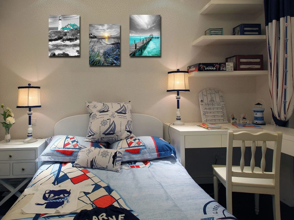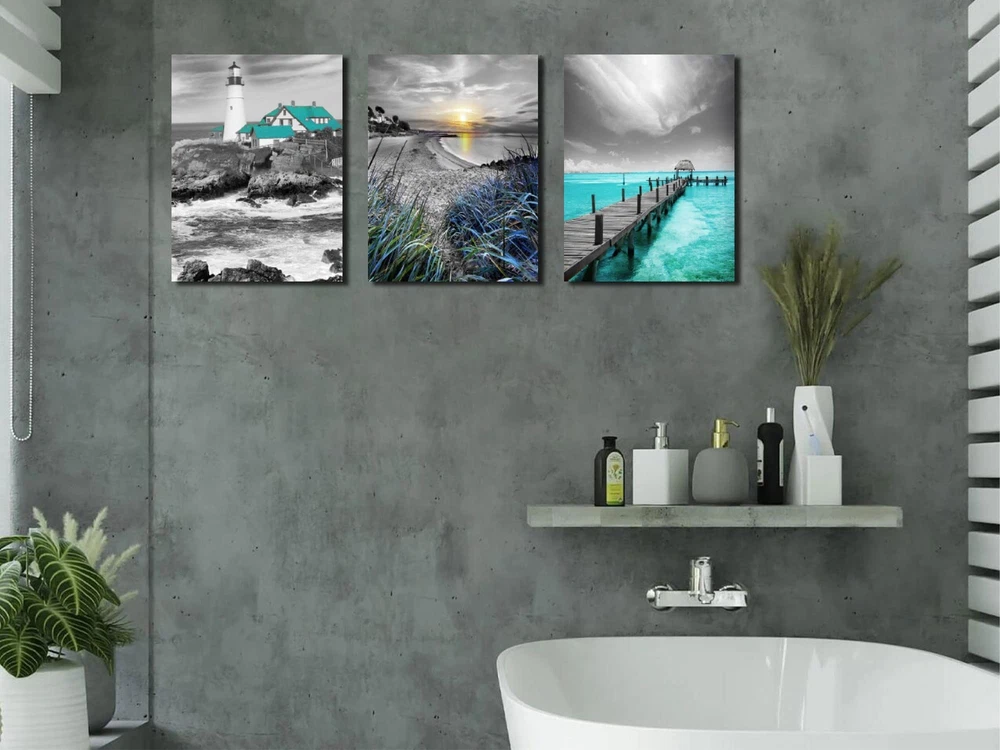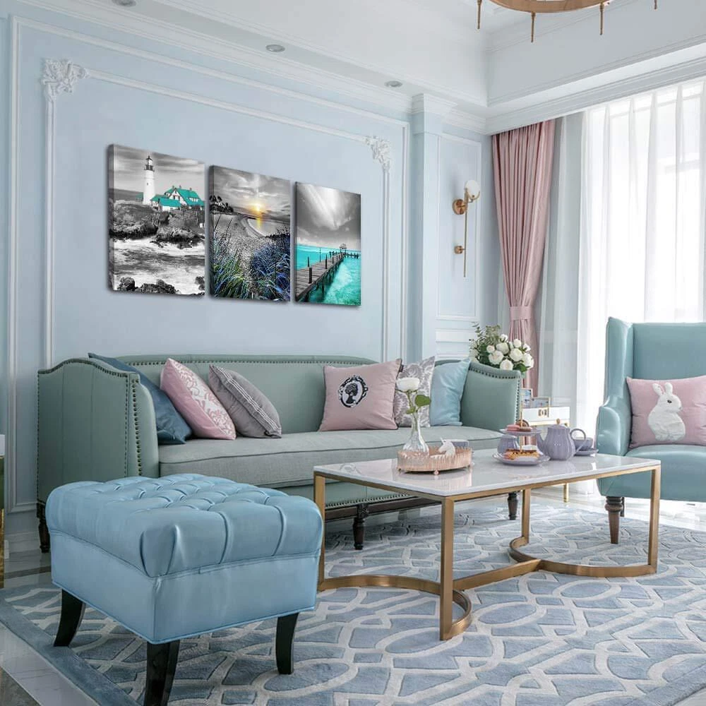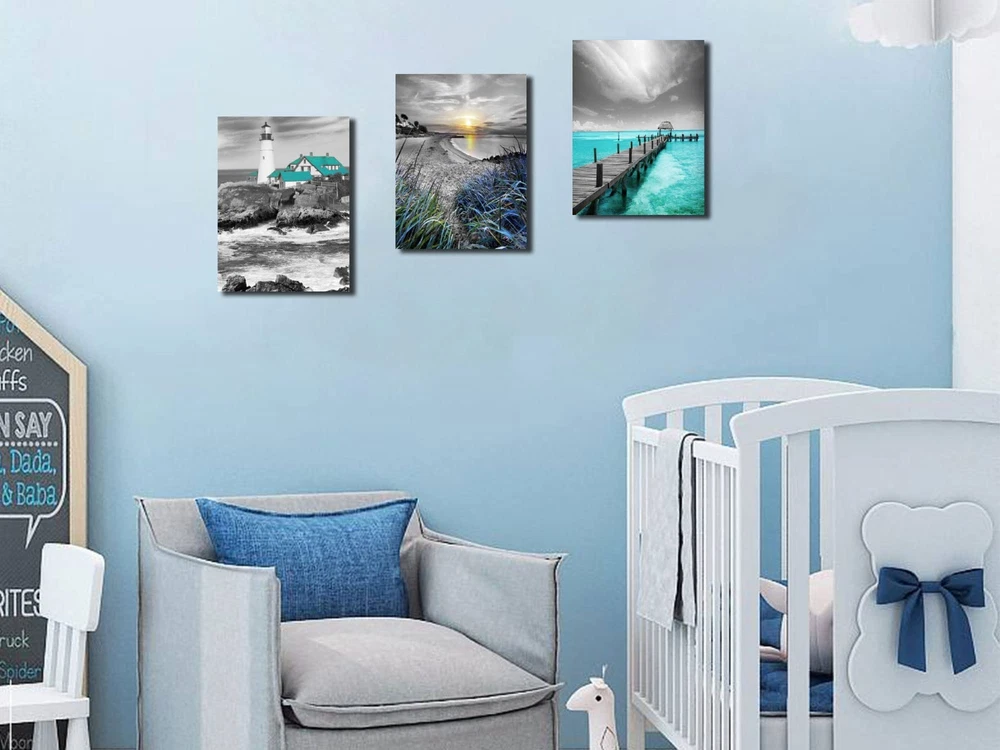 Canvas Wall Art Ocean Seascape Blue Painting Prints Modern Teal Lighthouse Pictures for Bathroom Kitchen Bedroom Spa Wall Decor . Red Flowers Painting Description: *HD prints on thick canvas with vivid color, waterproof, non-fading, dust proof features. *Each canvas panels already framed and stretched over solid pine wood bar with hook accessories nailed, easy to hang. *Each panels edges of paintings are also printed to make it get perfect 3D effect, perfect wall decoration for home and office to make you feel relax while working or get off work. About Us: Art are art creator and manufacture over 10 years experience for 100% hand painted oil paintings and canvas prints artwork. We are professional online supplier for modern canvas wall art, handmade oil paintings, acrylic paintings, watercolor paintings, abstract art paintings. We 30 days money back and make you rest assure to purchase our products with high quality and affordable price. Wall Painting Decoration Guide : Perfect choice for bedroom, living room, guest room, meeting room, bathroom, dinning room, coffee bar, nurseries house, hallway, corridor, college dormitory, hotel, inn, spa, lounge, salon, home and office decor. Perfect Gift Idea : Best choice gift idea for holiday, wedding, Christmas, Valentine's Day, Anniversary, Father's Day, Mother's Day, Birthday. Warm Tip for Size : The painting displayed in the pictures above provides an idea of how this canvas art printing looks like on your wall. It does not represent the exact size of the printing. Please measure your wall before you choose the ideal size. Due to the different brands of monitor setting, the printing colors may appear slightly different. If you have any questions, please us directly. We will try our best to help you within 12 hours, hope you have a enjoy shopping experience in . Teal Ocean Wall Art Size: 12inx16inx3pcs(30cmx40cmx3pcs), framed gallery wrapped ready to hang. Making this wall art a striking focal point in any room and sparking conversations with its charm Teal Wall Art Feature: High definition superior inject machinery printing on good quality canvas,waterproof, non-fading for many years. Gallery T with wooden bar inner and hooks mounted on each panels, simply assemble for wall decor Wall Art: Wall decor and gift idea for Thanksgiving Day, Christmas, New Year, holiday, wedding, Valentine's, Anniversary, Father's Day, Mother's Day, Birthday etc Suitable places: Living room, bedroom, kitchen, dinning room, bathroom, guest room, master bedroom, over fireplace, home, office, porch, salon, spa, hallway, stairway, waiting room wall decoration This design is a timeless symbol of guidance and hope, making this wall art a striking focal point in any room and sparking conversations with its charm
