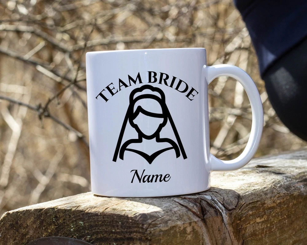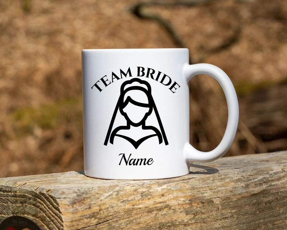 Team Bride Premium Personalized Coffee Mug Or Teacup. Perfect Gift For Product Details.. This high quality 11oz. ceramic white mug has a premium hard coat that provides crisp and vibrant color reproduction sure to last for years. Perfect for all hot & cold beverages. The highest quality printing possible is used. It will never fade no matter how many times you wash it. Material: 100% Ceramic. Print both sides. Dishwasher and Microwave Safe. High Gloss + Premium White Finish. Printed in the U.S.A. Personalized & Custom. We support personalized and custom mug to add custom, when placing an order, you can add notes to the "order note" in shipping address section. Also you can contact us directly via message. Shipping Info. Ready to ship in 1 to 2 business days, All products are made-to-order and proudly printed in the United States. Shipped by USPS and DHL, You will receive your order in 5-7 days. Replace & Refund. All products are defective during shipping broken, chipped will be replaced free of charge. You are not satisfied with the product, we will refund 100% money to you. If any other issues arise, please do not hesitate to message, we would be more than happy to assist you.