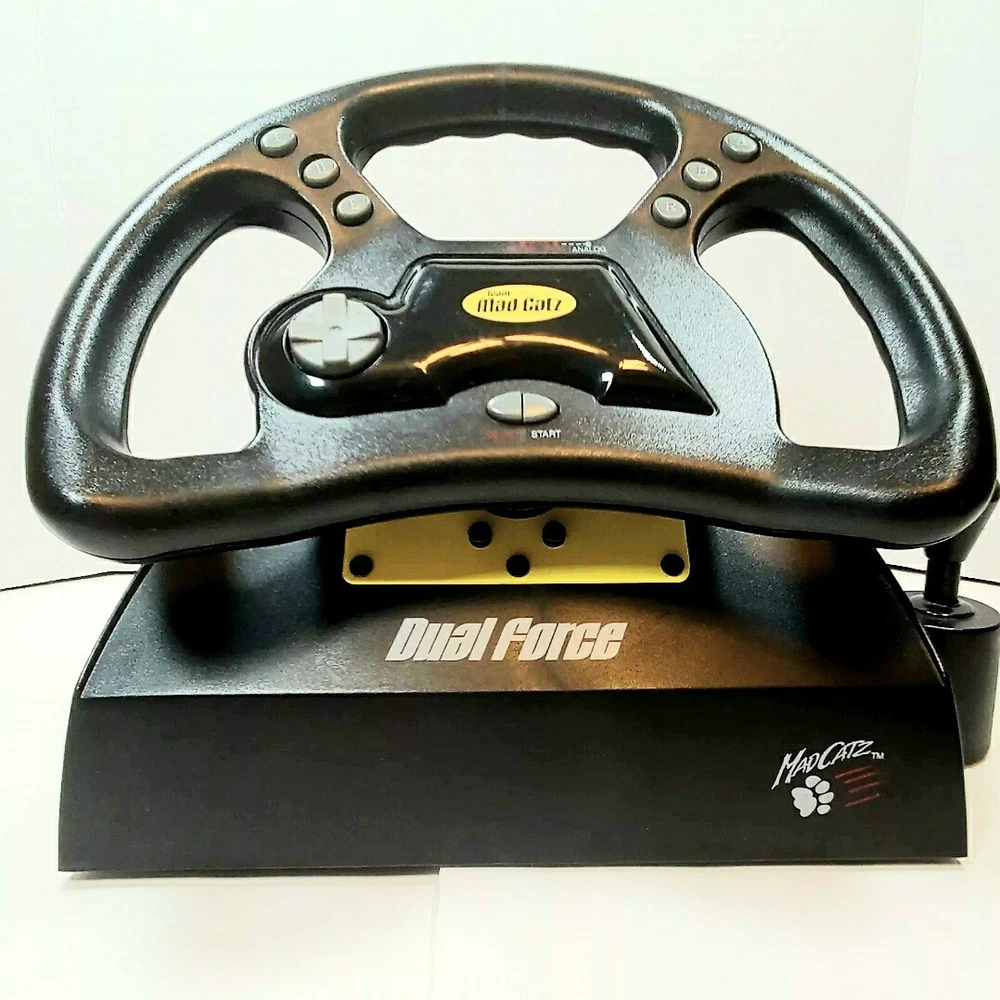 Team Mad Catz Dual Force Racing Steering Wheel/Pedals PS1 For PlayStation. Pre-Owned-Does Not Come with Oriignal Box! Note: Item weighs 7 pounds! Thank you for stopping by!