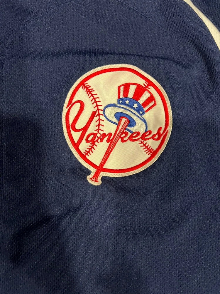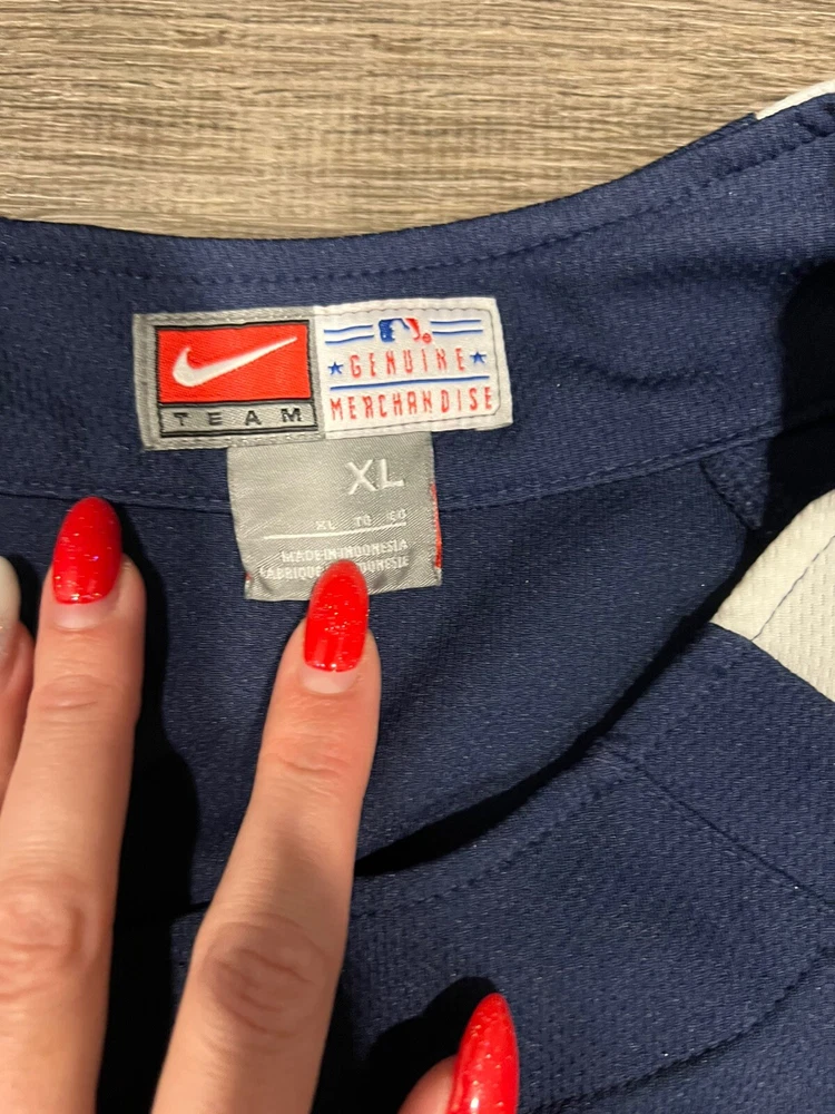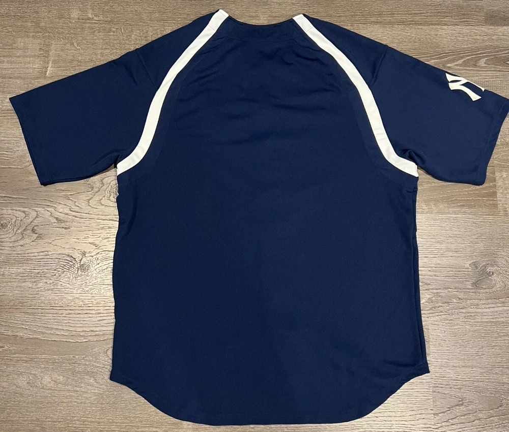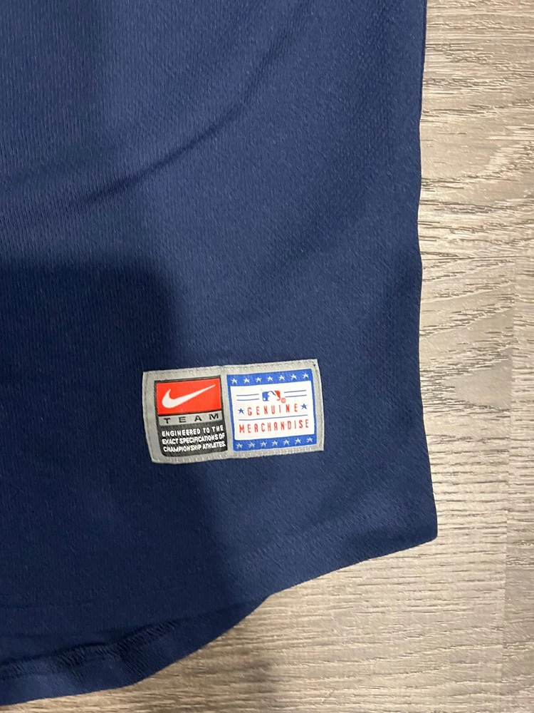 Embrace your New York Yankees fandom with this striking blue Nike jersey. A must-have for any die-hard MLB enthusiast, the jersey is designed for comfort and style, featuring a classic button-up front that captures the spirit of America's favorite pastime. Tailored to fit size XL, it's a versatile addition to any fan's wardrobe, suitable for game days or casual outings. Crafted to meet the quality standards of both Nike and the New York Yankees, this jersey is a testament to the timeless appeal of Major League Baseball. With its durable fabric and iconic team logo, it's an essential piece of fan apparel that brings a touch of Yankee pride to any setting.