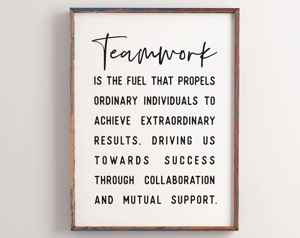 Teamwork Quotes Printable Art Motivational Wall Art For Office Home Office Decor Prints Art Coworkers Gift Material: Premium luster photo paper Print type: Inkjet printing One side printed + The finish provides the highest possible resolution and color saturation + Lasts up to 200 years in color and 400 years in black-and-white + Printed on high-quality resin-coated photo base paper medium + Posters can be hung with double-sided tape, tacks, or framed + Hand washing with a gentle cry cloth is recommended for extended durability I will hand select the best choice of paper for your chosen design to ensure top quality results for a beautiful, bright and luxurious print. All prints are sealed in cellophane slips for protection during transportation, and are shipped in a protective cardboard envelope.