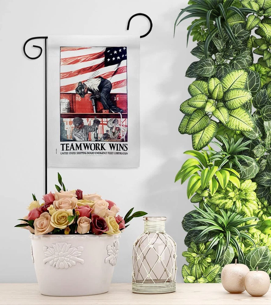 PROUDLY Made In USA - Package And Product Designed In California PURCHASE WITH CONFIDENCE - From 's US Authorized Resellers MADE OF DURABLE - 100% Thick Polyester Fabric construction helps resist the wear and tear from frequent use TEXT READABLE BOTH SIDES - Garden Flag Set Double-Sided Print DURABLE FLAG - Double stitching panels on multiple rows and high quality Sleeve to provide lasting strength VIBRANT COLORS - With UV-Resistant Maintains Its Colors All Season Long FEATURES - Free Breaks Down Metal Garden Flag Pole Included!