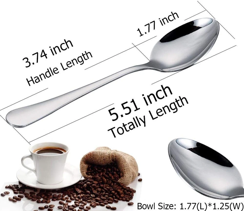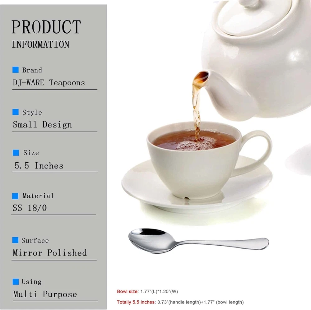 Store New Arrivals Add to Favorite View Feedback Contact Teaspoons Small Coffee Stainless Steel Spoons Set of 6, 5.5 Inch Description Manufacturer DJ-WARE Style Tableware Color 5.5 inch Small teaspoon Product Dimensions 5.5"L x 1.25"W Material Stainless Steel Is Dishwasher Safe Yes Item Weight 5 ounces Number of Pieces 6 Brand DJ-WARE Size 6-pieces This is a brilliant set of spoons for small family reunions, about 2-6 people, that contains 6 pieces of small spoons in mirror polished, which is great stirring in the small cups between 8 to 12 oz. Small spoons, DJ-WARE teaspoons, which are 5.5 inches in total, work well in 8-12oz cups to enjoy delicious British tea, chocolate and coffee as you want in the casual time. Then, you will love them. Our DJ-WARE teaspoons set of 6 is also perfect for replenishing or replacing your cutlery in a timely and efficient manner where the spoons are lost. These spoons of silverware were made of 18/0 premium stainless steel, and mirror polished, with no rough edges. Therefore, they are easy to clean in the dishwasher and not going to rust easily. The cream or milk can be mixed quickly and smoothly into the coffee or tea in the cup and saucer with DJ-WARE teaspoons. Moreover, they can also be used for having dessert at parties, tea time or home. They are a must-have kitchen tool for housewives alike. That is a worthwhile investment for anyone who takes cooking seriously. Product Description Which is the suitable size for cups with 8-12oz? Are you still spending time searching for the right size spoon for 8-12oz cups? It can be frustrating when the spoon you receive is either too big or too small. But with DJ-WARE teaspoons which 5.5 inches small size, stirring coffee or tea in 8-12oz cups becomes a breeze. The tear drop head of this spoon allows for soft and smooth stirring, making it perfect for drinks like cappuccino, flat white, latte, and British tea. This remarkable 5.5-inch spoon is designed to fit cups ranging from 8 to 12 ounces and is ideal for stackable cups. Whether you're enjoying a hot chocolate on a chilly evening or sipping on a fruit smoothie at a sunny cafe, this spoon enhances your drinking and eating experiences with its convenience and style. For which quantities do you want to make a choice? These teaspoons come in three sizes of packaging to suit various occasions. In a delightful and intimate family gathering, the small and exquisite 6-piece pack of teaspoons adds a touch of elegance and charm to the cozy dining table. Use them to carefully prepare a cup of piping hot tea or fragrant coffee for your beloved family and friends, and savor the durability and dependability offered by the stainless steel material, along with the smoothly finished edge design that provides a delightful and velvety touch. As you stir gently, watching the steam rise gracefully and the aroma fill the air tantalizingly, it creates a warm and inviting ambiance throughout the space, enhancing the harmonious and pleasant dining atmosphere For medium-sized gatherings or formal business banquets, the substantial 12-piece pack of Teaspoons ensures that every guest can indulge in this meticulous attention. The generous 24-piece pack of Teaspoons is ideal for large-scale events, ensuring a copious supply while elevating the dining experience. With their exquisite craftsmanship and unique design, the Teaspoons enhance the dining experience with an added dash of elegance and refinement. Every use is a truly delightful and enchanting moment, making dining time even more wonderful and unforgettable. ABOUT US We offer the best prices around on high quality products. Our E-store includes media such as books, movies, music and games while offering electronics, toys, sporting apparel, clothing, tools, general home, garden items and more. SHIPPING We are always working hard to ensure your package arrives as soon as possible. Please understand that some factors like weather, high postal traffic, and the performance of shipping companies are outside of our control. We offer free shipping to the lower 48 states and ship within 2 business days of payment, usually sooner. We do not accept P.O. Boxes. Please provide a physical address. RETURNS We offer a 30-Day Return Policy on items which you are not completely satisfied with. You have the option for a full-refund or an exchange of the item. No returns are available on items shipped outside of the USA. PAYMENT We accept PayPal. CONTACT US This page content is yet to come Please ad us to your favorite seller and visit again later Thank You CUSTOMER SATISFACTION We try our very best to make sure every customer is completely satisfied. If there's a problem, message us! We're happy to help.