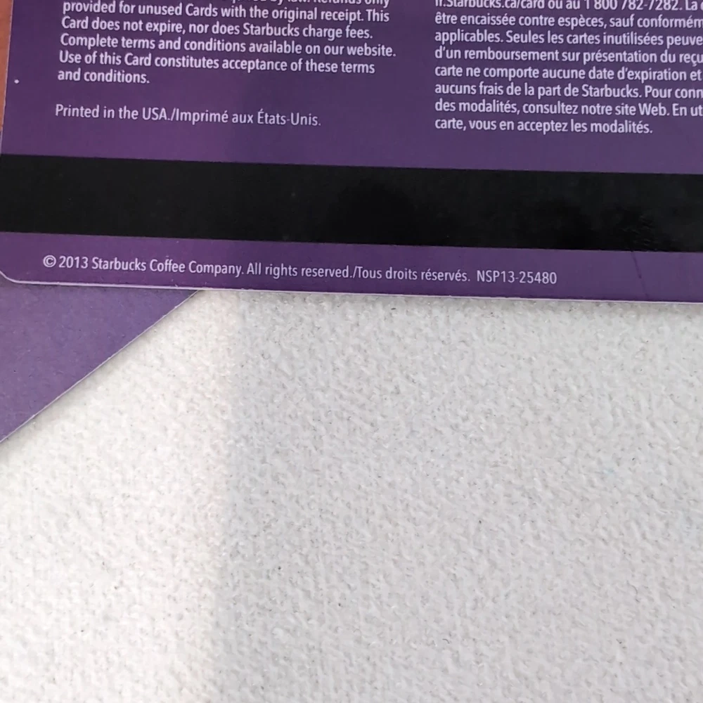 Teavana Gift Card $40 Loaded Canada 2013 Starbucks Coffee Purple Gold HTF Rare! Tested on the Starbucks Canada website, showing $40. Please note, I, the seller, removed the cover for the code on the back to check the balance, no one else has seen the code. The envelope that comes with this card has been dedicated, and has some minimal wear. While the card has not been used, there is some minimal wear. Please see pictures. We are a small home run business from Canada - Hoping to find you items that you love! Thank you for checking out this listing, please let me know if you have any questions 😊 Please check out the rest of our listings. Buy more, save more. Order multiple listings and we’ll pack them together to save on your shipping. All reasonable offers accepted. Fast Shipper! One day average ship time! This shop uses recycled shipping material when possible ♻️♻️♻️ If you do not want recycled shipping material, please comment before ordering. 🤗 International buyers – please note : Import duties, taxes, and charges aren't included in the item price or postage cost. These charges are the buyer's responsibility. Please check with your country's customs office to determine what these additional costs will be prior to bidding or buying.