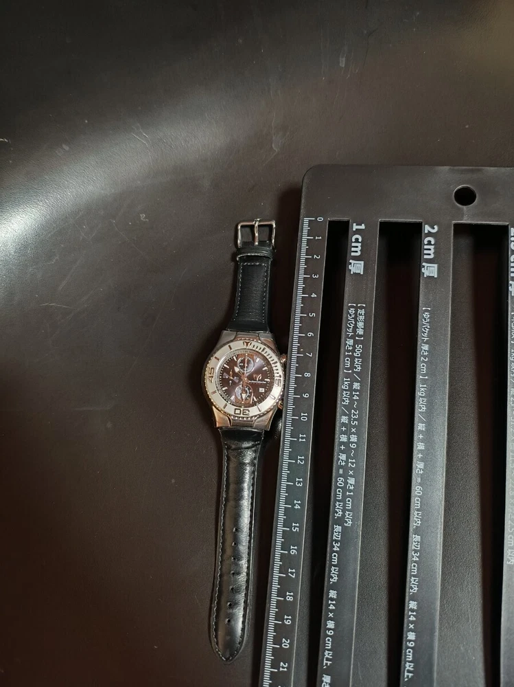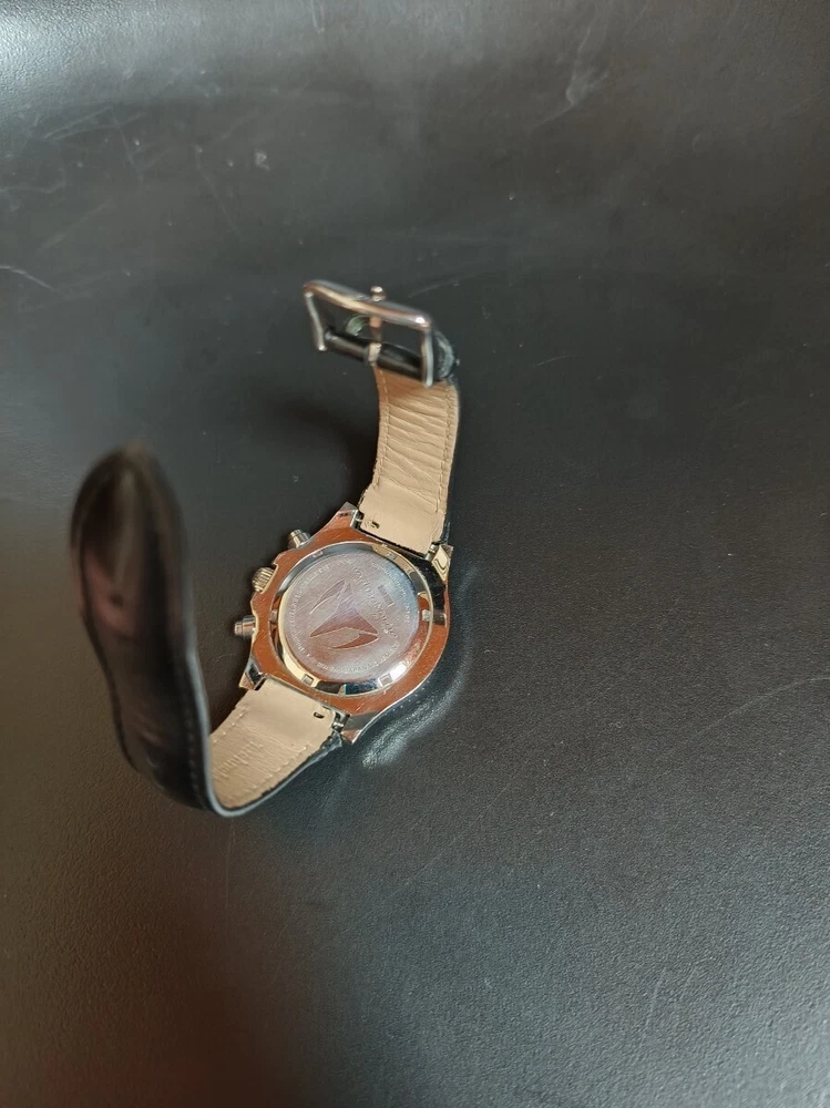 Techno Marine Techo Leather Black Chronograph Watch Auth w/Box from Japan