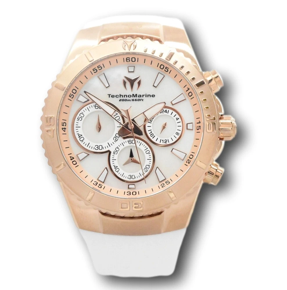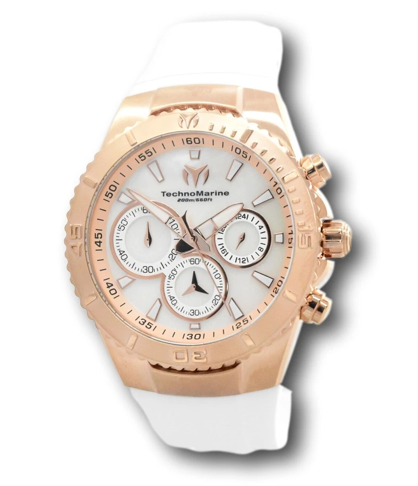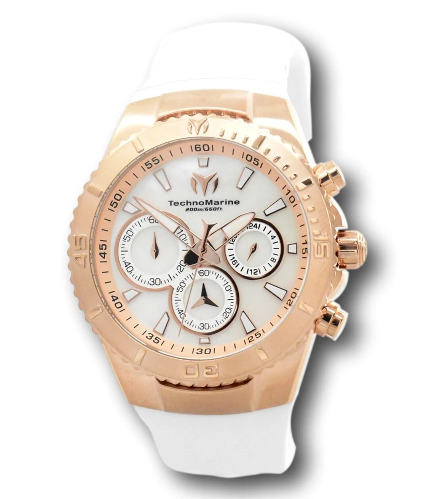 New - With Tags New and Unworn - Guaranteed Authentic - Includes Small Blue TechnoMarine box and warranty card 100% Functional - This listing includes pictures of the actual watches for sale - Watch features 200M water resistance, luminous hands and markers, and high-quality Japanese quartz movement Case size: 40mm or about 44 mm wide including the crown Thickness: 12.6 mm Weight: 3.7 ounces Items included: Blue TechnoMarine box and warranty card Max wrist size: 7.5 Inches Case and Dial Case Size: 40mm Case Material: Stainless Steel Bezel Material: Stainless Steel Bezel Color: 0 Crown Type: Push Crystal Type: Flame Fusion Dial Material: Mother of Pearl Movement Caliber: VD54 Function Type: Quartz Water Resistance Water Resistance: 200m Band Material: Silicone Tone: White Length: 195mm Size: 26mm Top Selling Disney Super Hero Star Wars New in Stcok TechnoMarine Contact Us TechnoMarine Sea Manta Women's 40mm Mother of Pearl Chronograph Watch TM-220074 New - With Tags New and Unworn - Guaranteed Authentic - Includes Small Blue TechnoMarine box and warranty card 100% Functional - This listing includes pictures of the actual watches for sale - Watch features 200M water resistance, luminous hands and markers, and high-quality Japanese quartz movement Case size: 40mm or about 44 mm wide including the crown Thickness: 12.6 mm Weight: 3.7 ounces Items included: Blue TechnoMarine box and warranty card Max wrist size: 7.5 Inches Case and Dial Case Size: 40mm Case Material: Stainless Steel Bezel Material: Stainless Steel Bezel Color: 0 Crown Type: Push Crystal Type: Flame Fusion Dial Material: Mother of Pearl Movement Caliber: VD54 Function Type: Quartz Water Resistance Water Resistance: 200m Band Material: Silicone Tone: White Length: 195mm Size: 26mm This item includes a 100% Money-Back Guarantee! If you're not completely satisfied with your purchase, just send it back in the same condition within 60 days and we will refund the full purchase price of the item. We'll even cover the return shipping! (Only applies to USA orders). Please Note: We do not cover water damage for watches. We do not test or verify manufacturer's water resistance claims. Please use your watch in water at your own risk. To receive free return shipping: Next to this item in your ebay purchase history, click on "Return this item." Please choose "Changed-mind" as the reason for the return. This will allow you to print a pre-paid return shipping label. - Klawk Watches - We have been in business for over 8 years, with more than 25,000 customers from around the world. We specialize in Invicta watches and have many models that can't be found anywhere else. We have some of the lowest prices - and you won't find better customer service. We try to provide the best customer service possible. We hand-inspect each watch and test them to make sure they are completely functional before shipping them out. We also include a no-hassle 60-day warranty on all of our watches (this warranty only covers defects in the watch movement). Our 60-day warranty does not cover any damage from water or moisture. Neither Klawkwatches nor any manufacturer covers water damage under warranty. Use your watch in water at your own risk. We're happy to help! If you have any questions, Please let us know and we will get back to you within 24 hours. Shipping Returns Shipping Shipping Returns Shipping Orders are shipped daily. We generally ship items within 24 hours of receiving payment. We offer standard, Prioirty, and overnight shipping services. You can upgrade your shipping speed at checkout for the difference in shipping costs. Unless a shipping upgrade is purchased, items will generally ship as a First Class Package, the normal arrival time is 3-5 business days starting the day after the item is shipped. We do all of our international shipping through the eBay global shipping program. We ship the item to the eBay global shipping center and they will ship the item to you. eBay determines the international shipping costs and import fees for the item based on the item weight and your location. International shipments can take between 2-4 weeks to arrive depending on your location. Shipping Returns Returns Shipping Returns Returns If you're not completely satisfied with your purchase, you are welcome to return it within 60 days for a full refund. We will generally cover the return shipping costs if you are not satisfied with your purchase. Next to the item in your purchase history, you can click on "More Options" and "Return this item". This will allow you to print a pre-paid return shipping label. For international orders and returns, please contact us to make return arrangements.