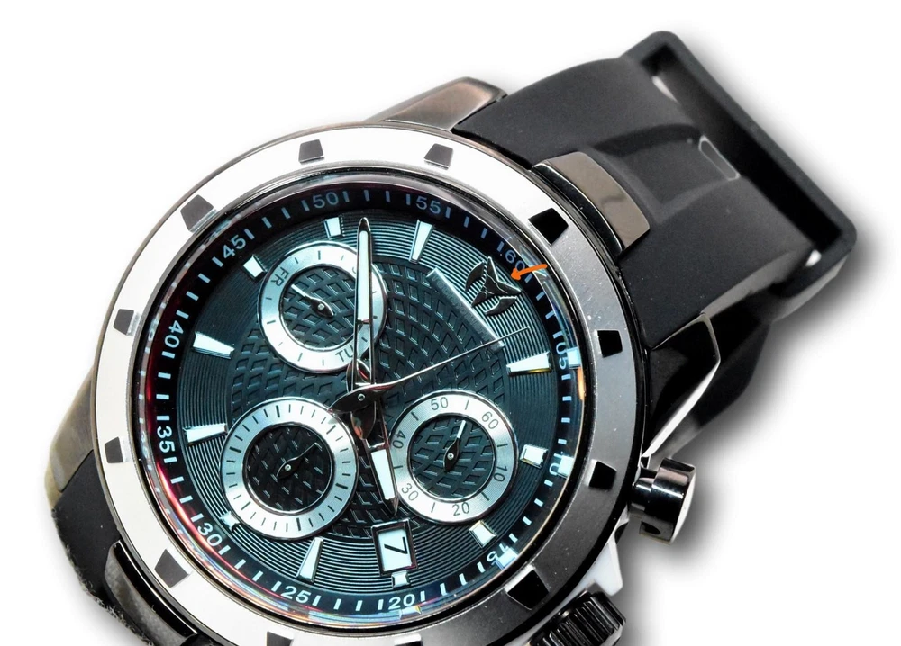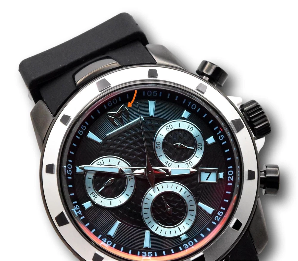 New - With Defects New and Unworn - The 12 o clock marker on the dial has some light scratches - see pictures - one tiny imperfection on the inside of the watch crystal near 1 o clock - see pictures - watch is otherwise NEW and 100% Functional Guaranteed Authentic - Includes Small Blue TechnoMarine watch box and Invicta warranty card Guaranteed Authentic - Watch features high quality Swiss Chronograph movement Watch features tinted crystal - looks blue colored straight on - but reflects red light at an angle or under bright lighting - Case size : 45mm or about 50 mm wide including the crown - Thickness: about 14.5 mm thick - Weight: about 4.1 ounces Items included: Small Blue TechnoMarine watch box Invicta warranty card Max wrist size: 8.0 - Inches Case and Dial Case Size: 45mm Case Material: Stainless Steel, Plastic Bezel Material: Aluminum Bezel Color: Silver, Black Crown Type: Screw Down Crystal Type: Flame Fusion Dial Material: Metal Movement Components: Swiss Caliber: Z60 Function Type: Quartz Water Resistance Water Resistance: 200M Band Material: Silicone Tone: Black Length: 200mm Size: 24mm Top Selling Disney Super Hero Star Wars New in Stcok TechnoMarine Contact Us Technomarine UF6 Men's 45mm Tinted Swiss Chronograph Watch TM-615007 *Scratches New - With Defects New and Unworn - The 12 o clock marker on the dial has some light scratches - see pictures - one tiny imperfection on the inside of the watch crystal near 1 o clock - see pictures - watch is otherwise NEW and 100% Functional Guaranteed Authentic - Includes Small Blue TechnoMarine watch box and Invicta warranty card Guaranteed Authentic - Watch features high quality Swiss Chronograph movement Watch features tinted crystal - looks blue colored straight on - but reflects red light at an angle or under bright lighting - Case size : 45mm or about 50 mm wide including the crown - Thickness: about 14.5 mm thick - Weight: about 4.1 ounces Items included: Small Blue TechnoMarine watch box Invicta warranty card Max wrist size: 8.0 - Inches Case and Dial Case Size: 45mm Case Material: Stainless Steel, Plastic Bezel Material: Aluminum Bezel Color: Silver, Black Crown Type: Screw Down Crystal Type: Flame Fusion Dial Material: Metal Movement Components: Swiss Caliber: Z60 Function Type: Quartz Water Resistance Water Resistance: 200M Band Material: Silicone Tone: Black Length: 200mm Size: 24mm This item includes a 100% Money-Back Guarantee! If you're not completely satisfied with your purchase, just send it back in the same condition within 60 days and we will refund the full purchase price of the item. We'll even cover the return shipping! (Only applies to USA orders). Please Note: We do not cover water damage for watches. We do not test or verify manufacturer's water resistance claims. Please use your watch in water at your own risk. To receive free return shipping: Next to this item in your ebay purchase history, click on "Return this item." Please choose "Changed-mind" as the reason for the return. This will allow you to print a pre-paid return shipping label. - Klawk Watches - We have been in business for over 8 years, with more than 25,000 customers from around the world. We specialize in Invicta watches and have many models that can't be found anywhere else. We have some of the lowest prices - and you won't find better customer service. We try to provide the best customer service possible. We hand-inspect each watch and test them to make sure they are completely functional before shipping them out. We also include a no-hassle 60-day warranty on all of our watches (this warranty only covers defects in the watch movement). Our 60-day warranty does not cover any damage from water or moisture. Neither Klawkwatches nor any manufacturer covers water damage under warranty. Use your watch in water at your own risk. We're happy to help! If you have any questions, Please let us know and we will get back to you within 24 hours. Shipping Returns Shipping Shipping Returns Shipping Orders are shipped daily. We generally ship items within 24 hours of receiving payment. We offer standard, Prioirty, and overnight shipping services. You can upgrade your shipping speed at checkout for the difference in shipping costs. Unless a shipping upgrade is purchased, items will generally ship as a First Class Package, the normal arrival time is 3-5 business days starting the day after the item is shipped. We do all of our international shipping through the eBay global shipping program. We ship the item to the eBay global shipping center and they will ship the item to you. eBay determines the international shipping costs and import fees for the item based on the item weight and your location. International shipments can take between 2-4 weeks to arrive depending on your location. Shipping Returns Returns Shipping Returns Returns If you're not completely satisfied with your purchase, you are welcome to return it within 60 days for a full refund. We will generally cover the return shipping costs if you are not satisfied with your purchase. Next to the item in your purchase history, you can click on "More Options" and "Return this item". This will allow you to print a pre-paid return shipping label. For international orders and returns, please contact us to make return arrangements.