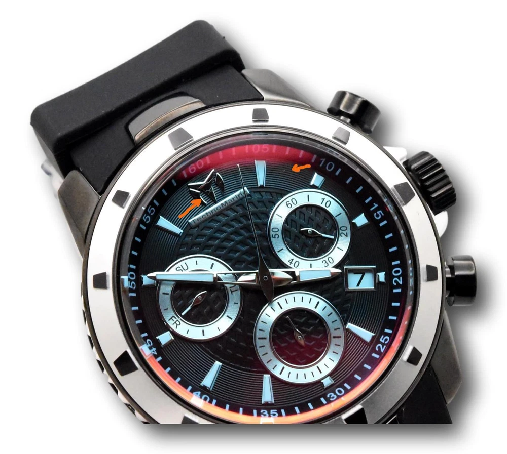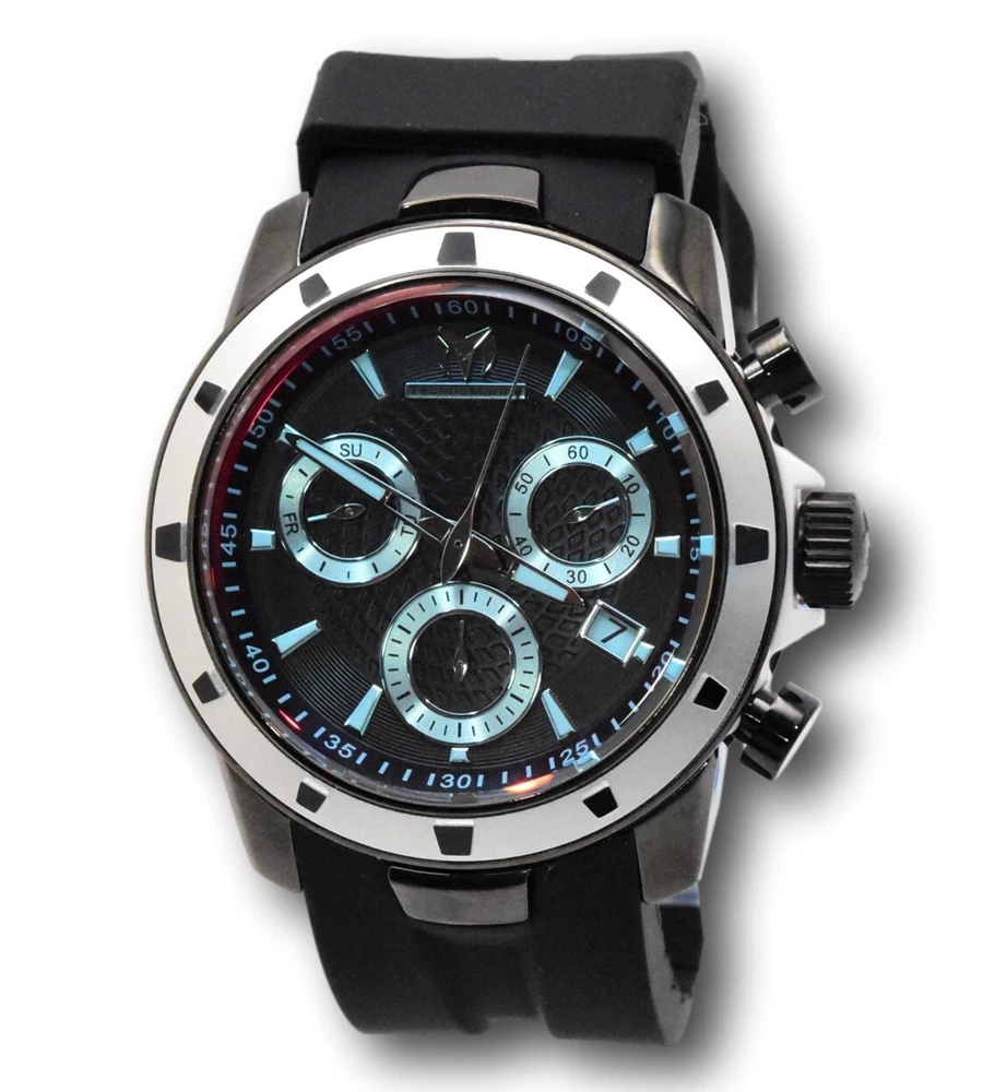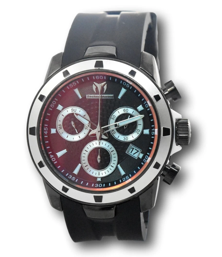 Band Type: Two-Piece Strap Dial Style: Seconds Hand Case Finish: Polished Case Color: Black Department: Men Band/Strap: Two-Piece Strap Watch Shape: Round Band Color: Black Band Material: Silicone Year Manufactured: 2020-Now Bezel Color: Silver Chronograph Type: Chronograph Case Size: 45 mm Max Wrist Size: 7.6-8 in Customized: No Movement: Quartz With Papers: Yes MPN: TM-615007 Water Resistance: 200 m (20 ATM) Display: Analog Indices: Stick Indexes Model: TechnoMarine UF6 With Original Box/Packaging: Yes Reference Number: TM-615007 Bezel Type: Fixed Brand: TechnoMarine Case Material: Plastic, Stainless Steel Dial Color: Black, Blue, Red With Original Packaging: Yes Type: Wristwatch Features: 12-Hour Dial, Chronograph, Date Indicator, Luminous Hands, Luminous Indexes, Push/Pull Crown, Sapphire Crystal, Scratch-Resistant, Seconds Hand, Splash Proof, Swiss Movement, Water-Resistant Original Packaging Description: With Box Style: Casual, Classic, Dress/Formal, Luxury, Sport Caseback: Screwback Case