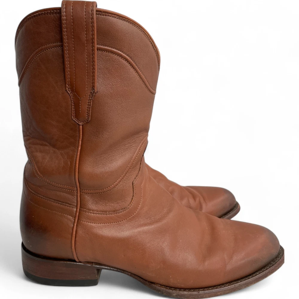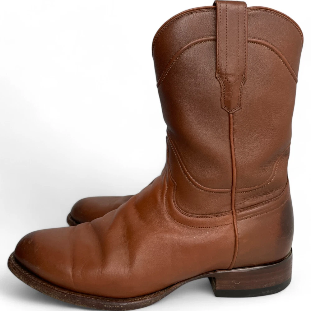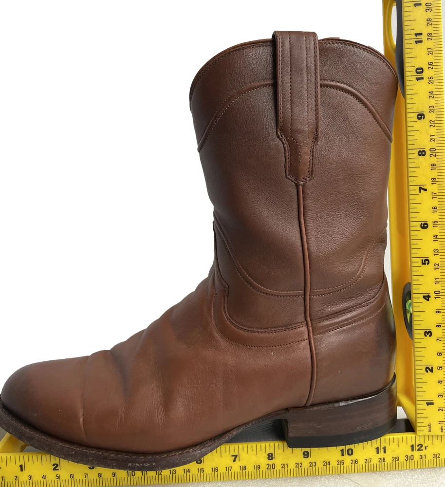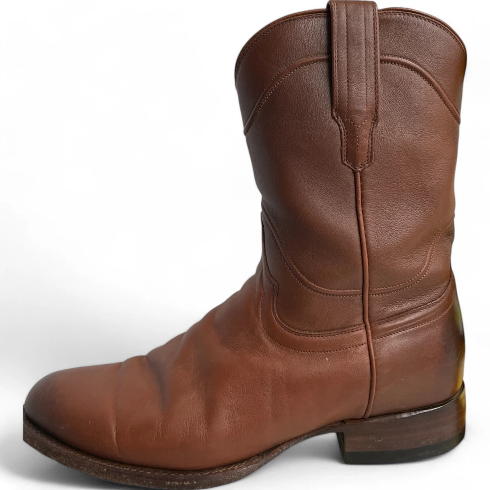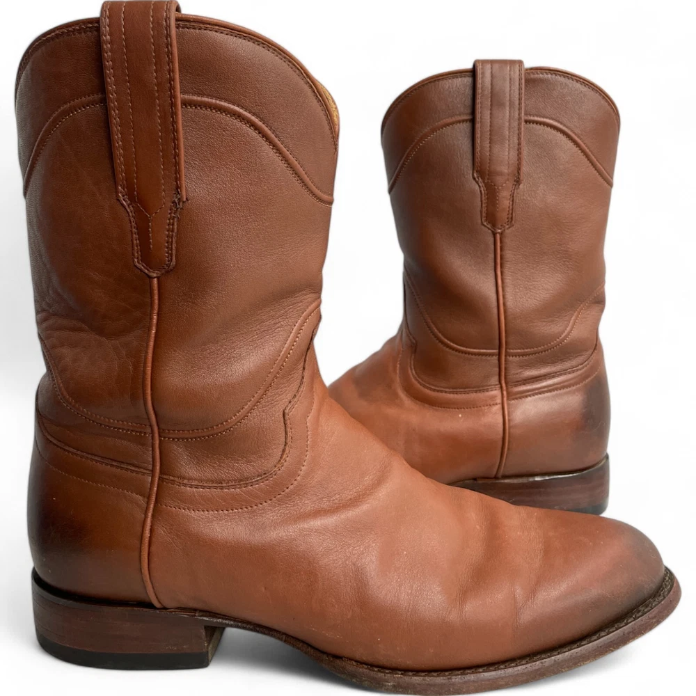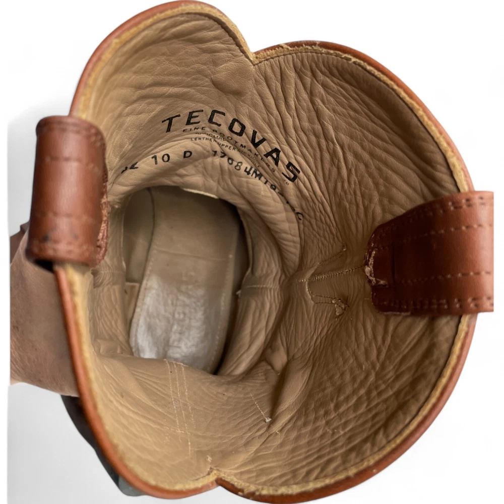 US Shoe Size: 10 Shoe Width: D Department: Men Type: Boot Accents: Embroidered Closure: Pull On Toe Shape: Almond Toe Upper Material: Leather Theme: Biker, Cowboy, Western Color: Brown Features: Comfort Pattern: Western Brand: Tecovas Model: Tecovas The Earl Style: Western