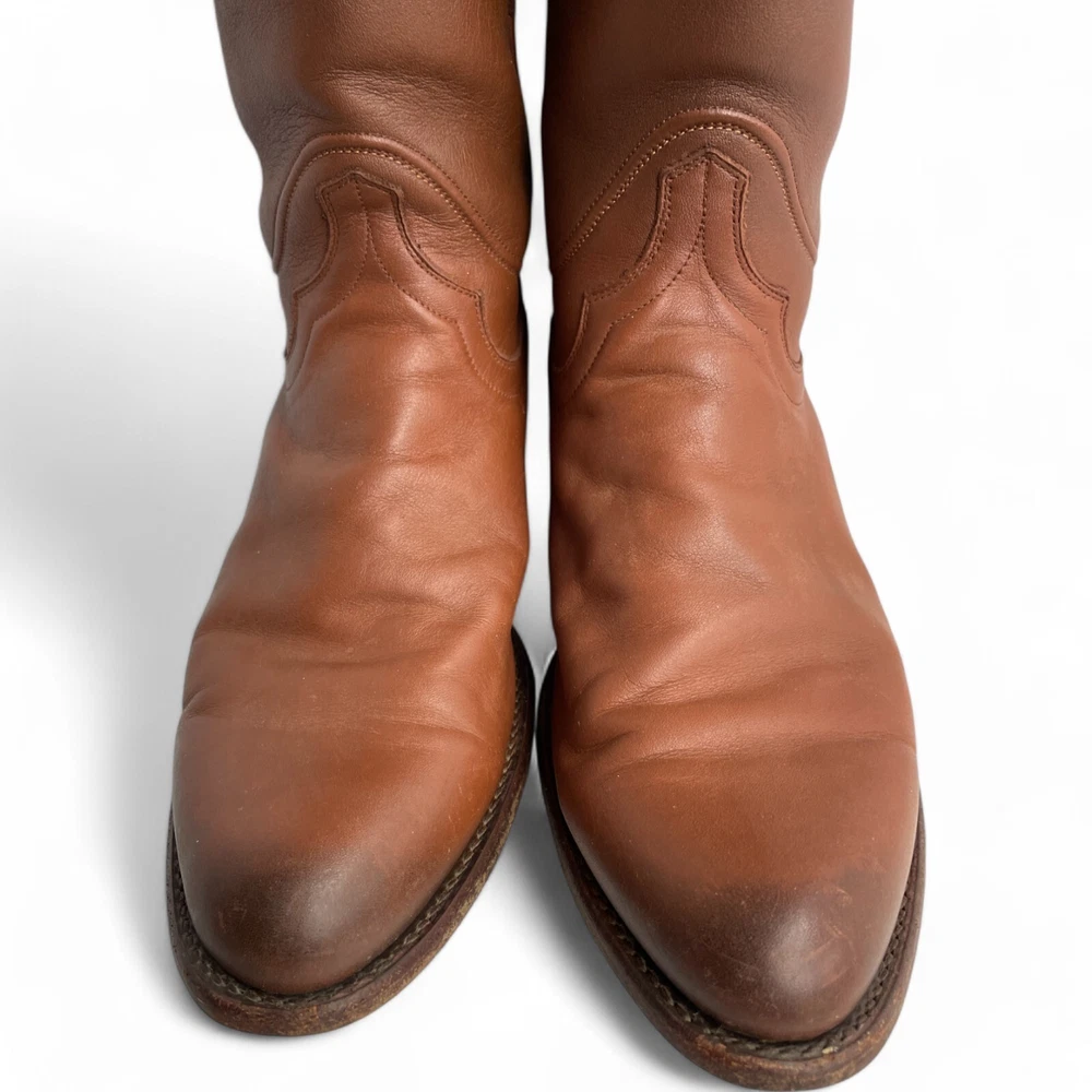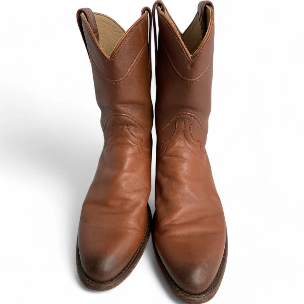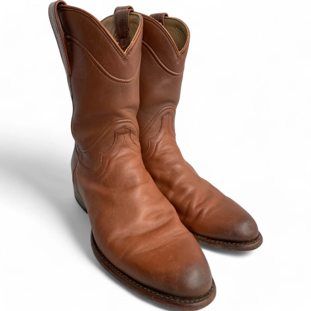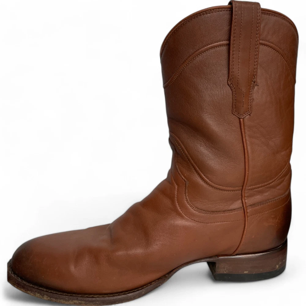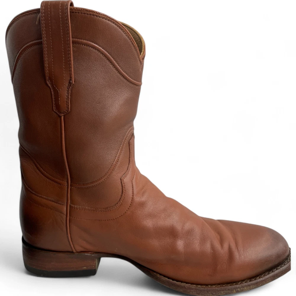 US Shoe Size: 10 Shoe Width: D Department: Men Type: Boot Accents: Embroidered Closure: Pull On Toe Shape: Almond Toe Upper Material: Leather Theme: Biker, Cowboy, Western Color: Brown Features: Comfort Pattern: Western Brand: Tecovas Model: Tecovas The Earl Style: Western