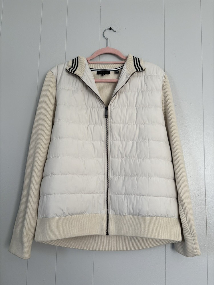 Gorgeous no flaws cozy Ted Baker Bomber Jacket. On the website this Cream/Bone color is listed as Ecru