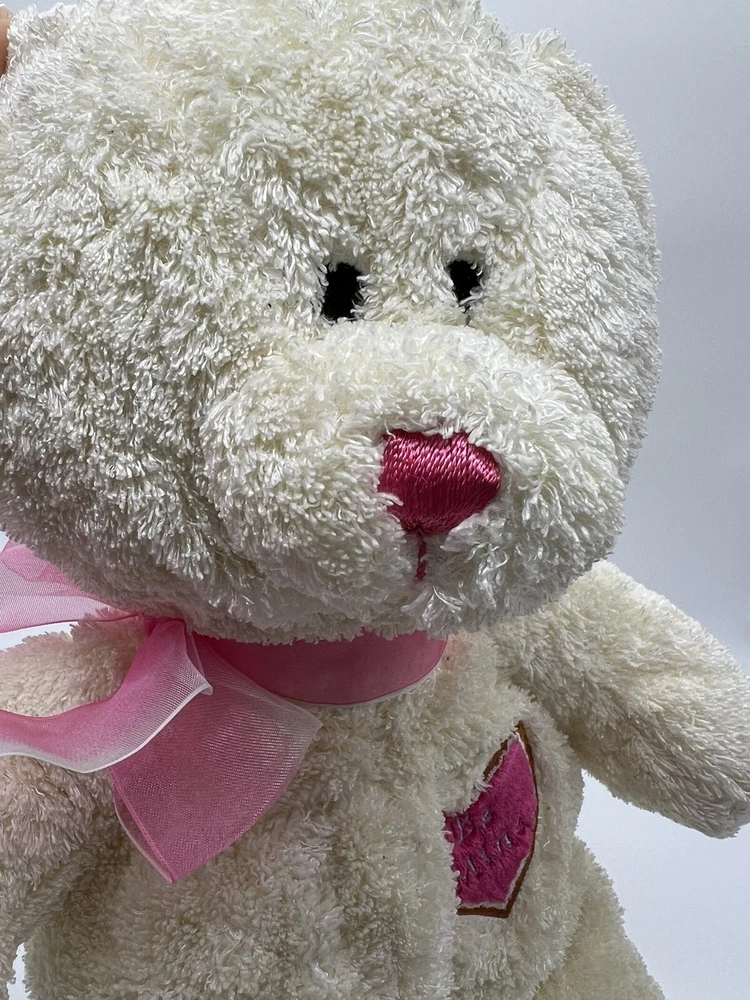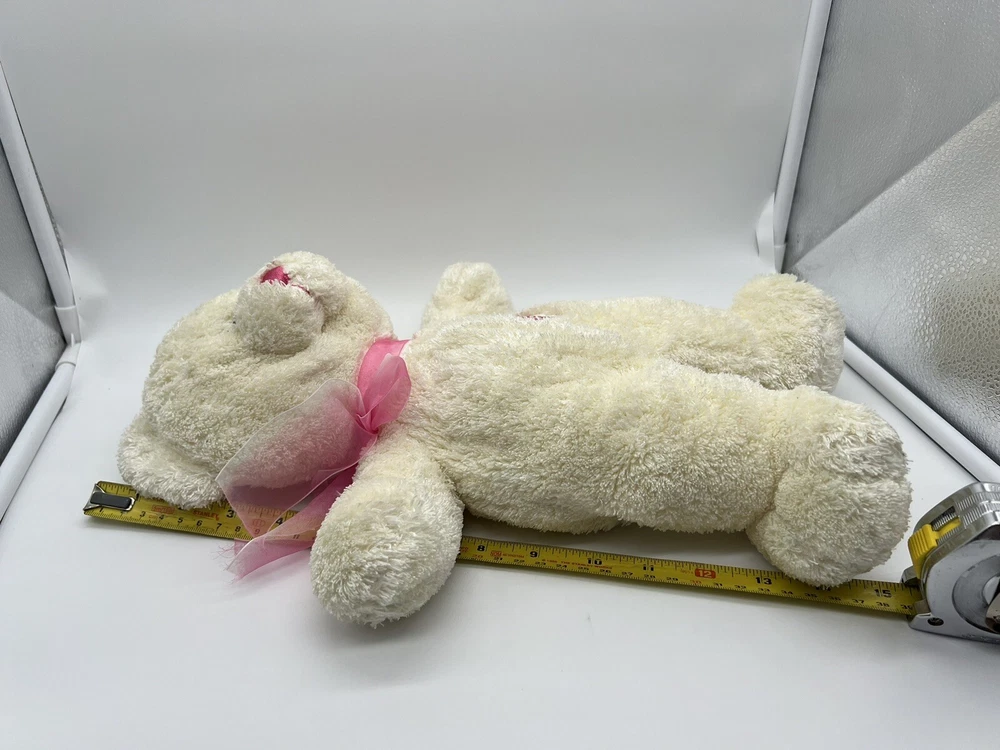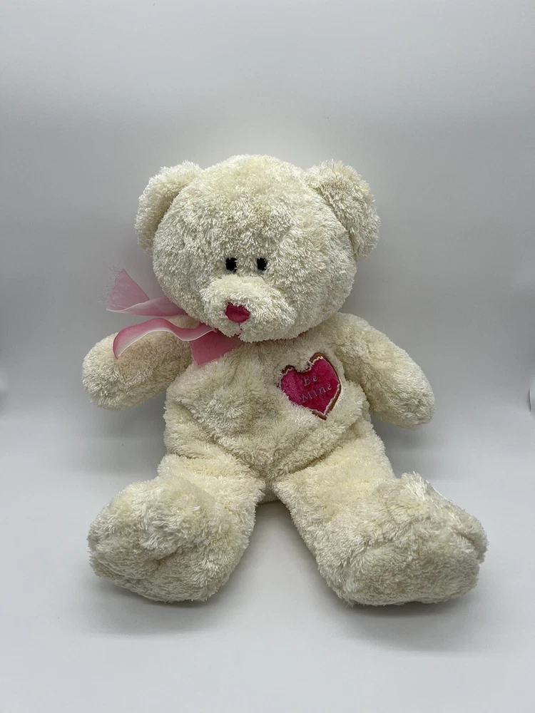 Teddy Bear Be Mine Floppy Plush Bear Pink Bow Heart Lovey 15”
