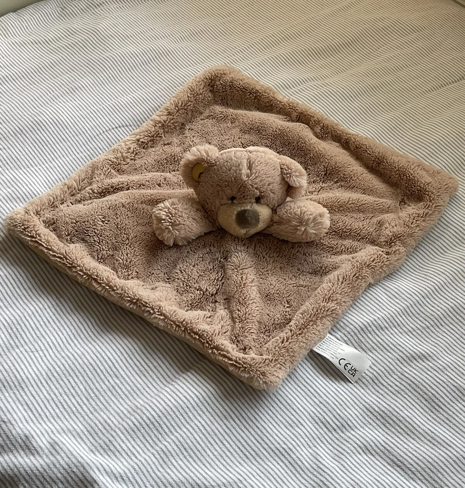 Kelly Toys Baby Teddy Bear Security Blanket Rattle Toy Lovey 14"x14 Light Brown. In excellent condition. Clean with no tears or stains. So soft!
