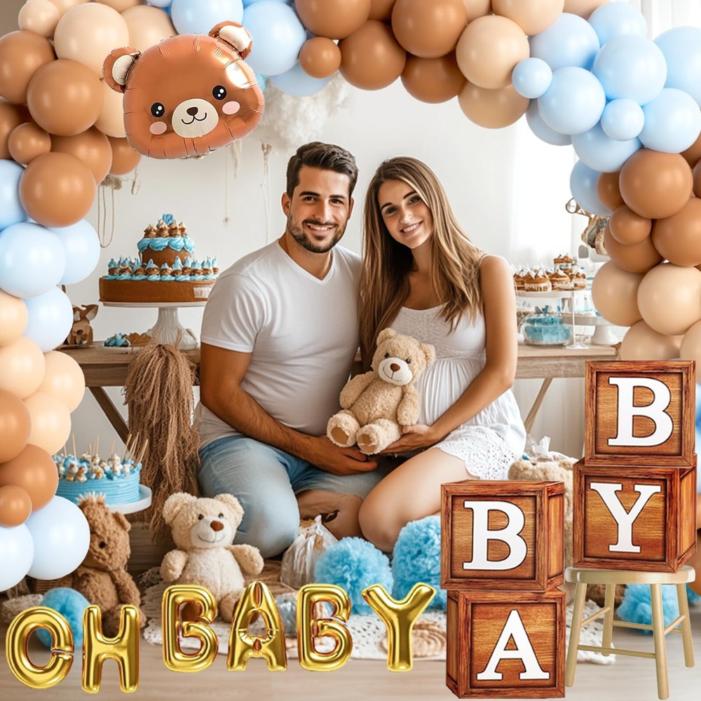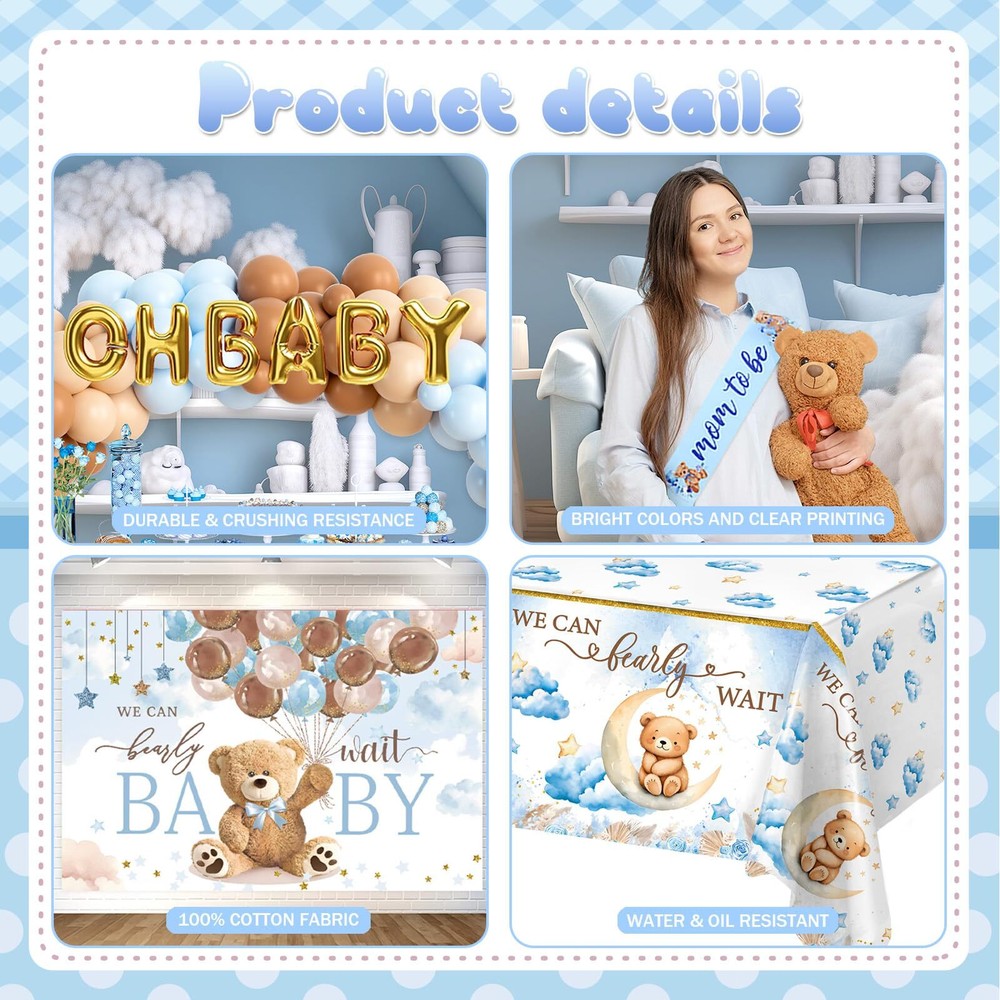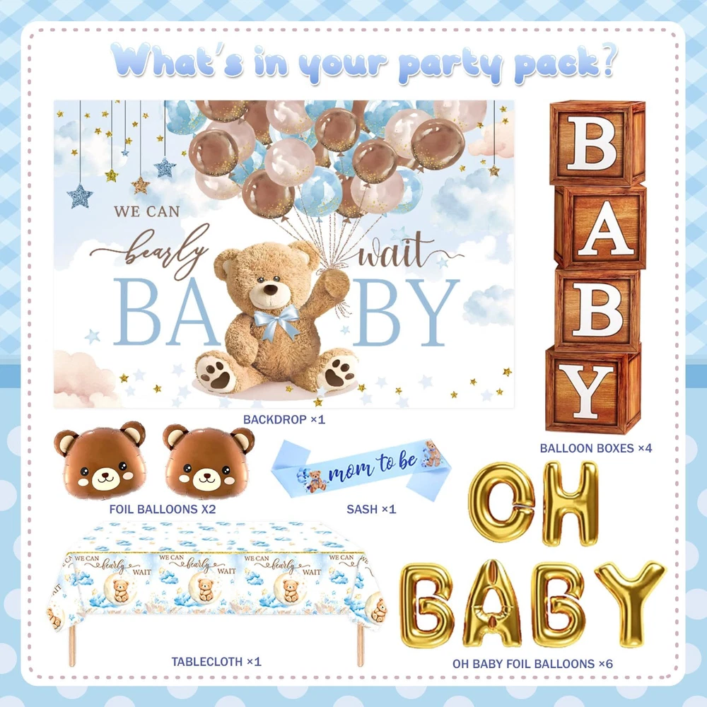 A Heartwarming Welcome: This kit is centered around a cuddly theme and infuses the party with a sense of comfort and love. The gentle presence of teddy bears brings a touch of sweetness and expectation. We Can Bearly Wait to see the baby boy Teddy Bear Baby Shower Decorations: 100 x latex balloons, 2 x bear foil balloons, 1 x 'OH BABY’ foil balloons, 1 x backdrop, 1 x tablecloth, 4 x balloon boxes, 1 x 'mom to be’ sash, balloon strip, glue dots, ribbons Easy to Assemble: The teddy bear baby shower decorations are designed for easy setup with a balloon strip, glue dots, and ribbons included, making it convenient for you to create a stunning balloon arch or centerpiece with minimal effort Versatile Decoration for Multiple Occasions: These teddy bear decorations are perfect not only for baby showers but also for first birthdays, gender reveal parties, and other baby-themed events Satisfactory Customer Service: If you need any assistance or are unhappy about this purchase, please do not hesitate to contact us. We will try our best to solve the problem in time. This product is from brand Hombae