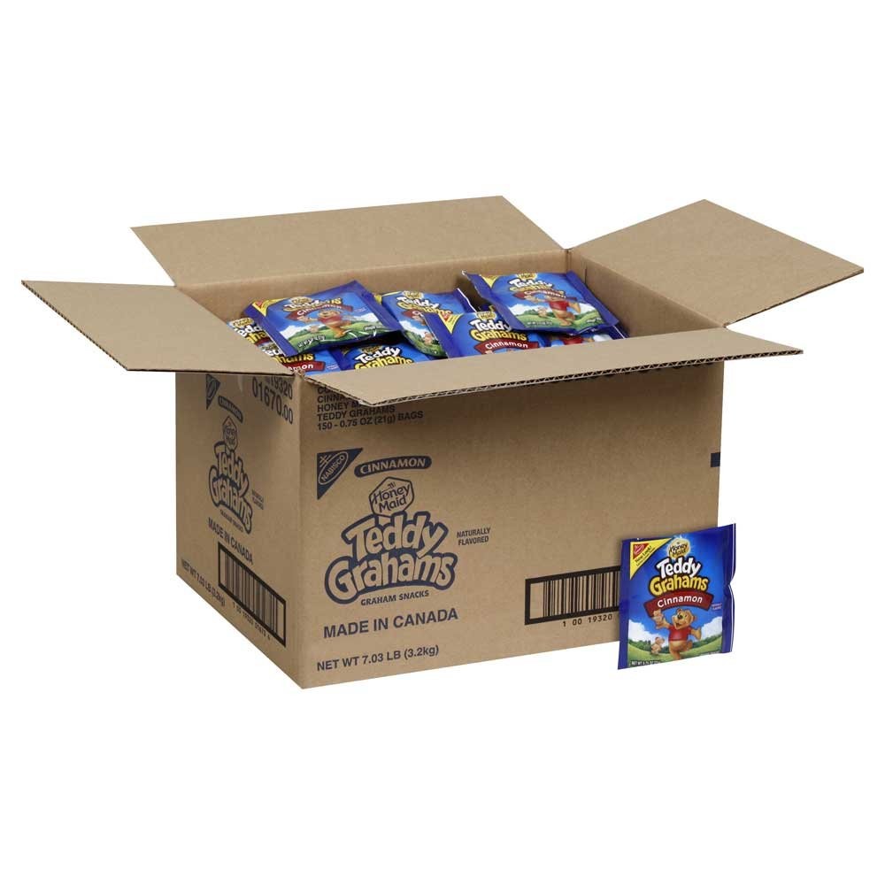 << The item is a Size 0.75 Ounce (Pack of 150) >> Enjoy a wholesome crunch with Teddy Grahams Cinnamon Graham Snacks. These cute bear-shaped graham cookies are lightly sweetened and sprinkled with warm cinnamon for a snack both kids and adults love. Each 0.75 oz pack is perfectly portioned for lunchboxes, road trips, or grab-and-go snacking. With 150 packs in this bulk case, you’ll always have a tasty treat ready to share. 0.75 Ounce (Pack of 150) Enjoy a wholesome crunch with Teddy Grahams Cinnamon Graham Snacks. These cute bear-shaped graham cookies are lightly sweetened and sprinkled with warm cinnamon for a snack both kids and adults love. Each 0.75 oz pack is perfectly portioned for lunchboxes, road trips, or grab-and-go snacking. With 150 packs in this bulk case, you’ll always have a tasty treat ready to share. Includes 150 single-serve 0.75 oz packs of cinnamon Teddy Grahams || Bear-shaped graham cookies with a warm cinnamon flavor || Perfect for school lunches, after-school snacks, or on-the-go treats || Made with whole grain and no high fructose corn syrup || Ideal for bulk storage, parties, events, or vending