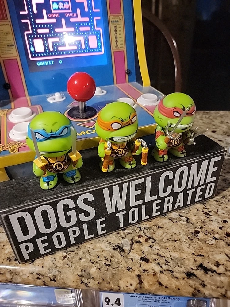 This product is a set of three sealed vinyl figures from the Teenage Mutant Ninja Turtles franchise. The figures are part of the Kidrobot brand and are based on the animation theme. The characters included in this set can be seen on the Display Box Figures. I also showed some from my personal collection so you can see the details and accessories. Which 3 characters will you get? Collect the whole set and find the chase.