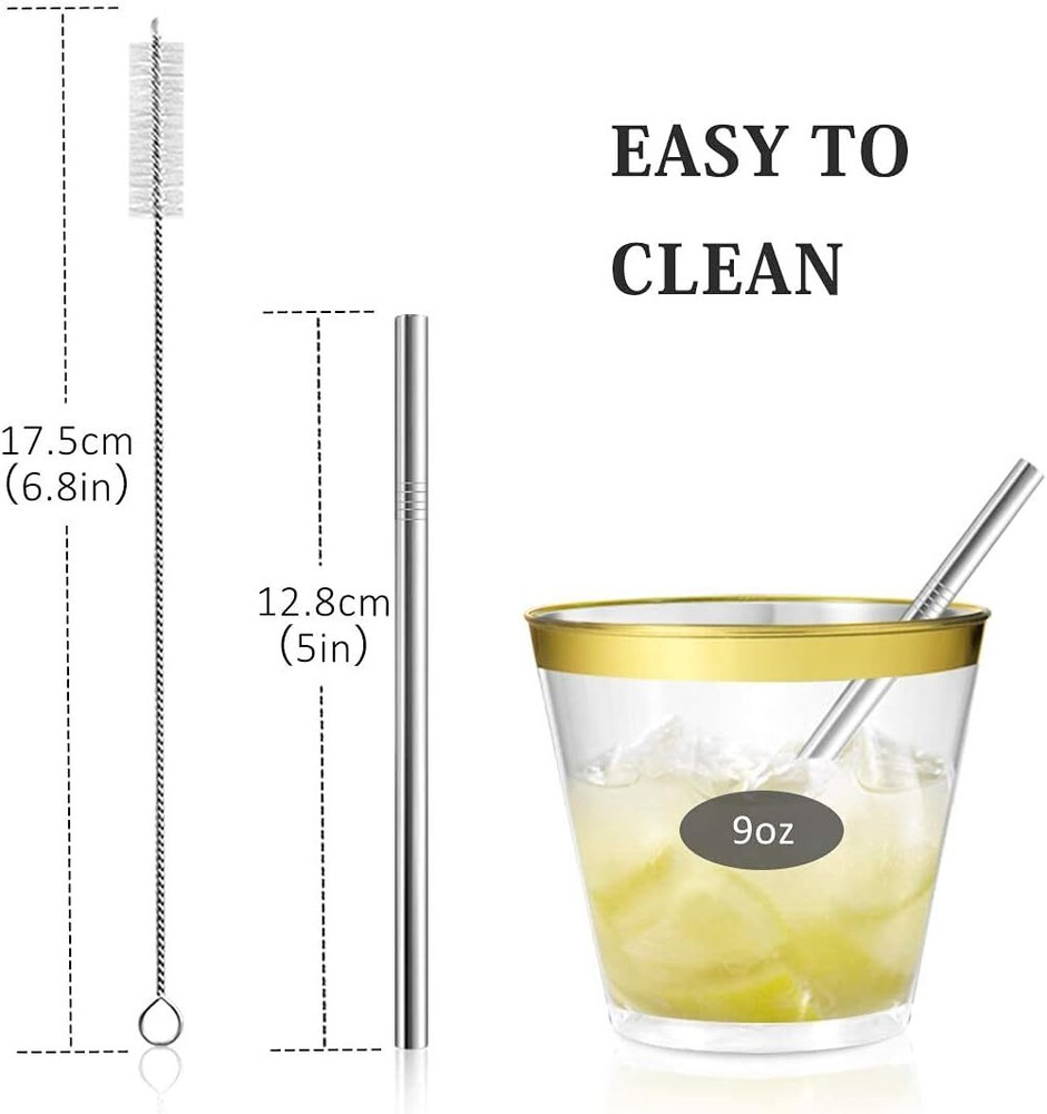 Teivio 12 Pack + Cleaning Brush, 5-inch Extra Short Reusable Small, Silver Product Details Material: Stainless Steel Color: Silver Size: Small Special Feature: Durable,Reusable Brand: Teivio Unit Count: 1 Count Number of Items: 12 12 STAINLESS STEEL STRAWS IN SIZED RIGHT: At 5 inches length, these straws are perfect for cocktail. REUSABLE: These drinking straws are made of silver-colored stainless steel. They are very strong, not too heavy or too light. STAINLESS STEEL: With our polishing technique, the surface of our straws are well polished, very smooth for your lips and hands to touch. DURABLE: They are durable, washable. One stainless steel straw can last for years and replace plastic straws. CHOICE: this reusable straw set is the perfect option for any occasion.