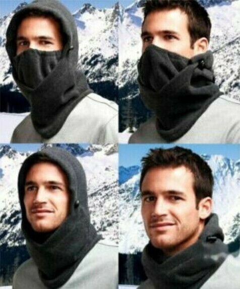 Tek Gear Mens Fleece 4-in-1 Balaclava Designed to keep you warm on cold days! colors: "charcoal", black four in one - can be worn as a balaclava, hood, gaiter, or neckwarmer resists pilling elastic across face for secure fit toggles at sides to adjust coverage One Size Fits All New With Tag Original Retail Price: $18.00