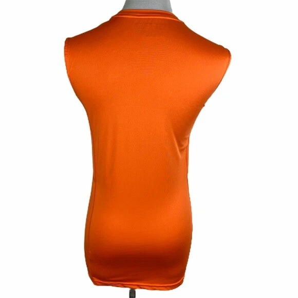 Tek Gear Performance Training Men's Small Orange Dry Tek Muscle Tank. Crew neckline and sleeveless. Moisture-wicking fabric keeps you cool & dry. Bulk up your fitness gear with this men's Tek Gear muscle tee. Great condition. Smoke free home. 90% Polyester / 10% Spandex Size: Small Measurements are approximate Pit to Pit: 17" Length: 26.5" #1409