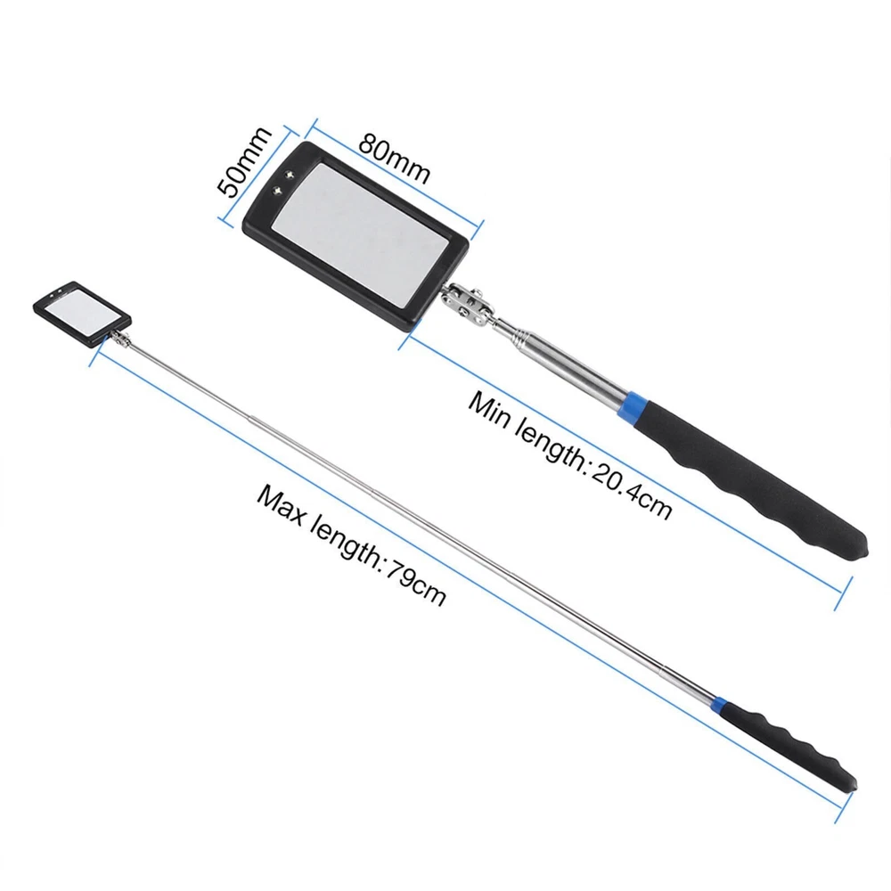 Description: This item is made of alloy steel and solid ABS plastic, durable and sturdy, safe and eco-friendly to use. It has 2 extra bright LED lights which can facilitate the inspection of hard-to-see and hard-to reach areas in vehicles, machinary etc, easily peering into the dark crevices of your workspace. It also features a 360 degree rotary ball joint for extra viewing capabilities, allowing inspection mirror to swivel freely, yet holding a desired position. Ideal tool for toolmakers, machinists, inspectors and mechanics, lights make it especially useful for dark and hard-to-see places. Worth buying. Features: Made of alloy steel and solid ABS plastic, durable and sturdy, safe and eco-friendly to use. It has 2 extra bright LED lights which can facilitate the inspection of hard-to-see and hard-to reach areas in vehicles, machinary etc, easily peering into the dark crevices of your workspace. It also features a 360 degree rotary ball joint for extra viewing capabilities, allowing inspection mirror to swivel freely, yet holding a desired position. Comfortable handle with soft, non-slip ABS grip which is designed for sure control. The length can be adjusted according to various situation. Ideal tool for toolmakers, machinists, inspectors and mechanics, lights make it especially useful for dark and hard-to-see places. Specification: Condition: 100% Brand New Material: Alloy Steel & ABS Color: Shown as picture Mirror Size: Approx. 5 * 8cm / 2.0 * 3.1inch Handle Length: Approx. 20.4 - 79cm / 8 - 31.1in Package Weight: Approx. 100g Package Included: 1 * Vehicle Inspection Mirror Note: The color of rubber ring is sent in random. All the items will be dispatched within one business day by Airmail after the payment is clear. Most times you will receive your order within 10-30 business days after we transfer your package to the delivery company. We cannot guarantee the delivery timeframe if the post office has any unexpected delays due to holiday,weather,customs, or other conditions. Some countries like Russia, Brazil, or some European countries may take up to 50 days or longer for delivery. We appreciate your patience if you haven't received items in 30 days(Russian customers may need more patience by reason of the local delivery system and/or customs). If you are concerned in any way, please feel free to contact us via ebay message instead of leaving negative/neutral feedback or opening a dispute . We will do our best to solve any problem(resend or refund any missingitem). Customs duty is obligation and liability of citizens in yourresponsible for any tax and custom duty incurred. Generally, thedelay or failure delivery is sometimes caused by the policy of different customs. Our listing price includes the value of goods,packaging cost,and export taxes,not including international duties. duties,taxes,and charges are not included in the item price or shipping fee. The duties are buyers' responsibility. Please check with your country's customs office determine what these additional costs will be prior to your purchase. All disputes arising from the duties will be submitted to ebay for solution. Any questions, pls. contact us via ebay message or email us. We will reply your message within 48 hours. If you do not receive our reply within 48 hours, pls. post a message again because sometimes our message system may block some emails. If you are satisfied with our service, pls. kindly leave us a positive feedback and give us the Detailed Seller Rating with all " 5 " in very area. Our aim is to provide Level Customer Service, your recognition will encourage us greatly and serve you better. We strive to keep all our customers satisfy. We will do our up most to exceed your expectations in customer service, communication and dispatching of your orders.