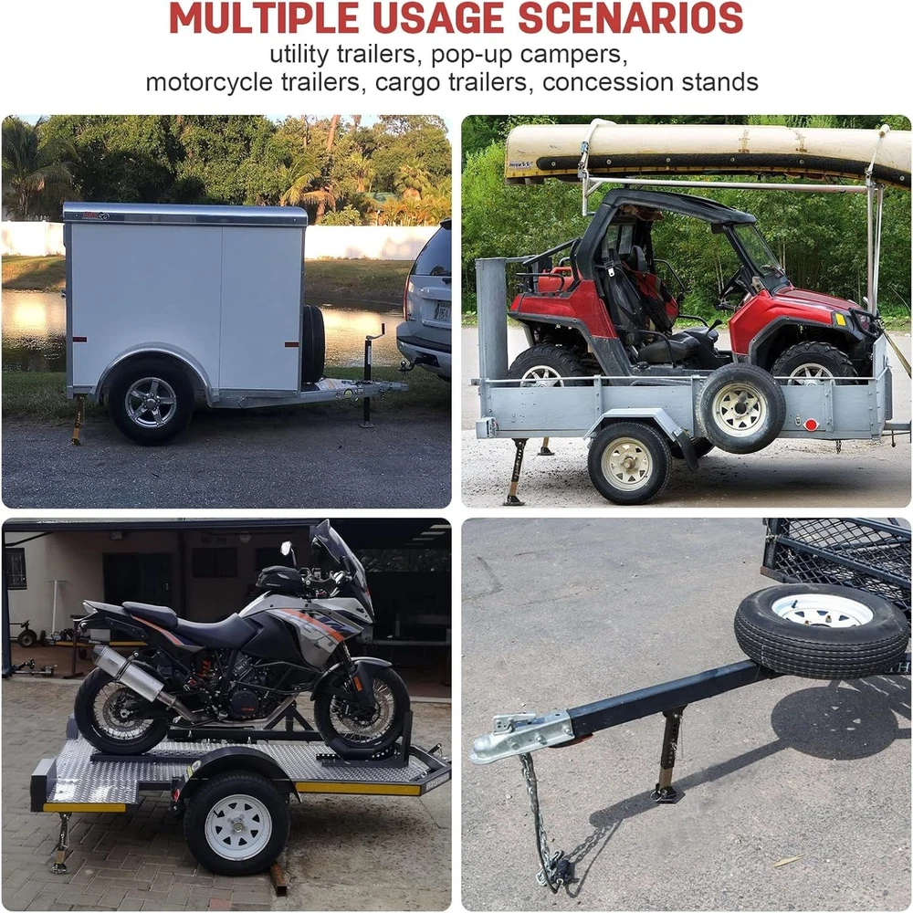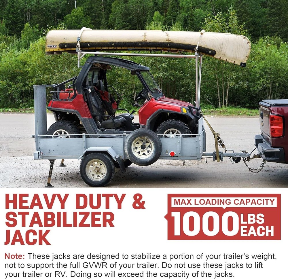 Telescoping RV Camper Accessories - 2 Pack Trailer Stabilizer Jacks, Adjustable 12" to 18", Slide Out Supports 1000 Lbs Capacity Each Vehicle Service Type Cargo Trailers, Pop-up Campers, Truck, Utility Trailers Material Alloy Steel Load Capacity 1000 Pounds Maximum Lifting Height 18.77 Inches Brand AUH About this item Upgraded Telescoping Jack: AUH telescoping folding trailer stabilizer jacks provide support for the slide rail when extended, which can effectively solve the problem of sagging and bending of the slide rail and help improve the stability of utility trailer Durable Material: The camper stabilizer jacks are constructed of heavy-duty steel and zinc powder-coating finish, which are anti-rust and anti-corrosion,designed for outdoor activities and providing maximum strength and longevity Adjustable Height: Each trailer leveling jack can be adjusted from 12" to 18" and its load capacity is up to 1,000 lbs; Plain tops of stabilizer jacks fit most slide-out frames and utility trailers Easy & Effortless Installation: Our trailer jack stand comes with all installation necessary parts you need. The trailer jack can be direct bolt on your trailers with screws. No need to worry about it! Both the top and bottom of folding trailer jacks can be rotated and fully spread under the trailer Reliable After-sale Service: If our stabilizer jacks for travel trailer ever fail on using, serving its purpose or its parts are missing, come and ask our professional customer service for a replacement; AUH is committed to making products and providing delighting service to each customer . We offer FREE shipping on all orders! . We ship within Five business days of payment, usually sooner. . We use a selection of shipping services such as UPS, FedEx, USPS etc. . We only ship to the lower 48 states, no APO/FPO addresses or PO Boxes allowed. . Local pickups and combined shipping options are not provided at this time. . Your satisfaction is a wonderful reward for our efforts. Please assist us by leaving a positive review if you feel pleased with our service. . In the event that you encounter any difficulties related to your order, please do not hesitate to reach out to us directly through the Messaging system on the Ebay platform. Kindly consider opening a COMPLAINT or a RETURN REQUEST as a last resort, only after all other possible measures have been attempted and we have been unable to provide you with assistance. . We will get in touch with you within 24 hours and make every effort to ensure your satisfaction. . Please rest assured of our service quality.