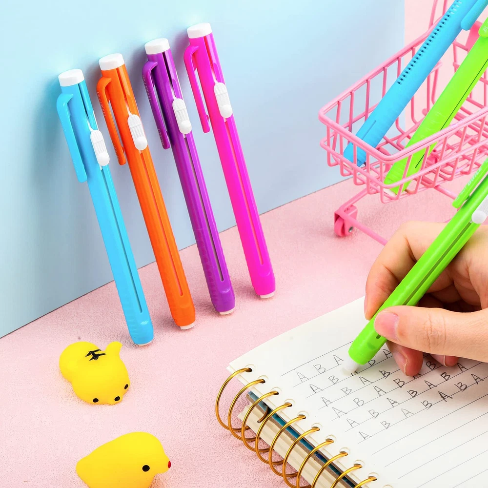 Features: Delicate gifts: You can send these erasers for pencils to your friends, partners and family members, they will be satisfied when they receive these gifts. School competition award: Stick erasers can be school and classroom competition awards to encourage students to study hard and move forward. Specifications: Material: rubber and plastic Color: green, blue, orange, purple, pink Size: 13.5 x 1 cm/ 5.31 x 0.39 inches Package includes: 15 x Retractable click erasers Notes: Manual measurement, please allow slight errors on size. The color may exist a slight difference due to different screen displays. Abundant Quantity: you will receive 15 pieces of rubber retractable erasers, the sufficient quantity is enough for your daily use and replacement needs, you can use them at home or in office Assorted Colors: drawing eraser for artists have green, blue, orange, purple, pink for you to choose, with a white stick eraser inside, you can choose your favorite color according to your preference Safe and Sturdy Material: erasers in assorted colors are made of quality rubber and plastic, safe and nontoxic, light weight but not easy to break, can be applied for a long time; They are the ideal school supplies for children Broad Range of Occasions: mechanical erasers for artists can be applied to erase mistakes on notes, diaries, envelopes, exercise books, suitable for students, teachers, kids, artists, drawing rooms, designers, office workers and so on Easy to Use: pencil retractable cute erasers are easy to use, erase mistakes on notes, a gentle push, convenient and quick, you can easily and cleanly erase the wrong text or lines
