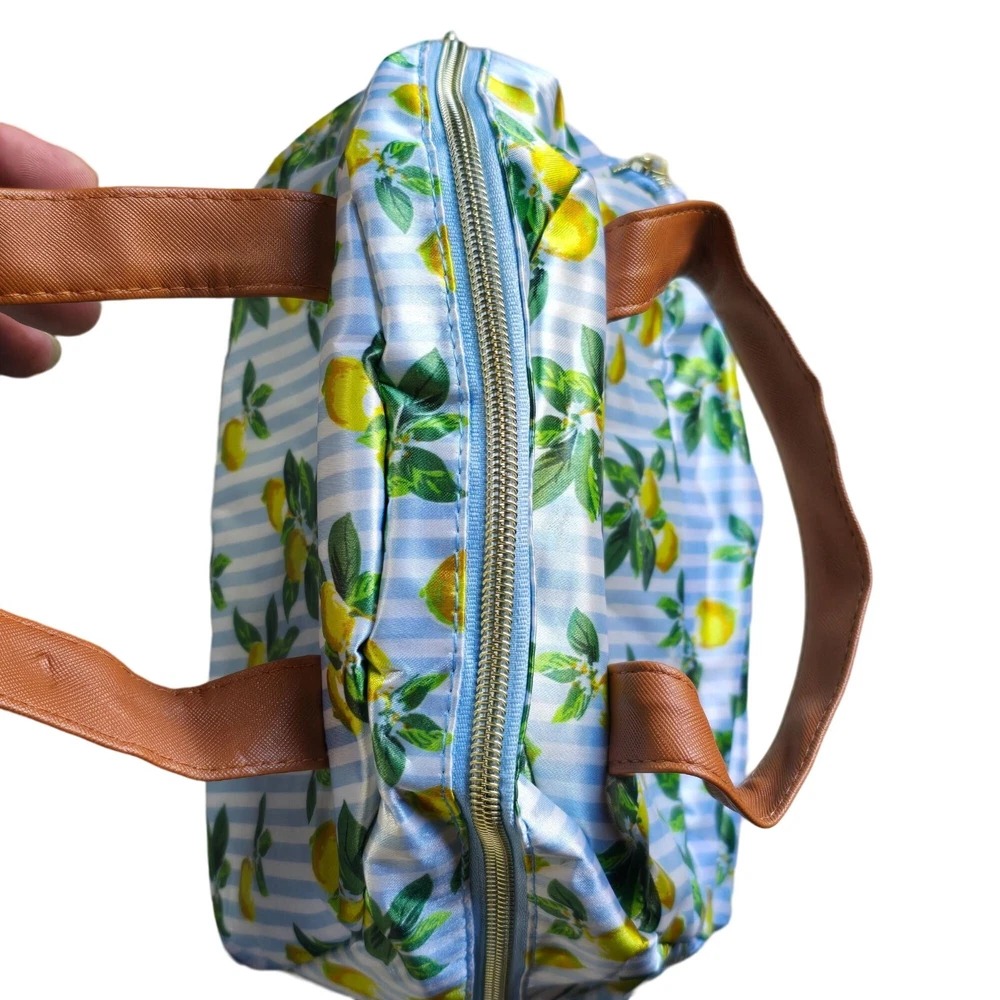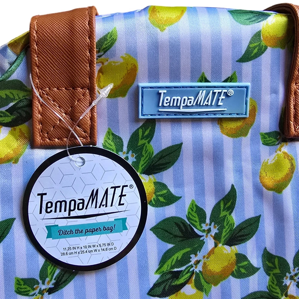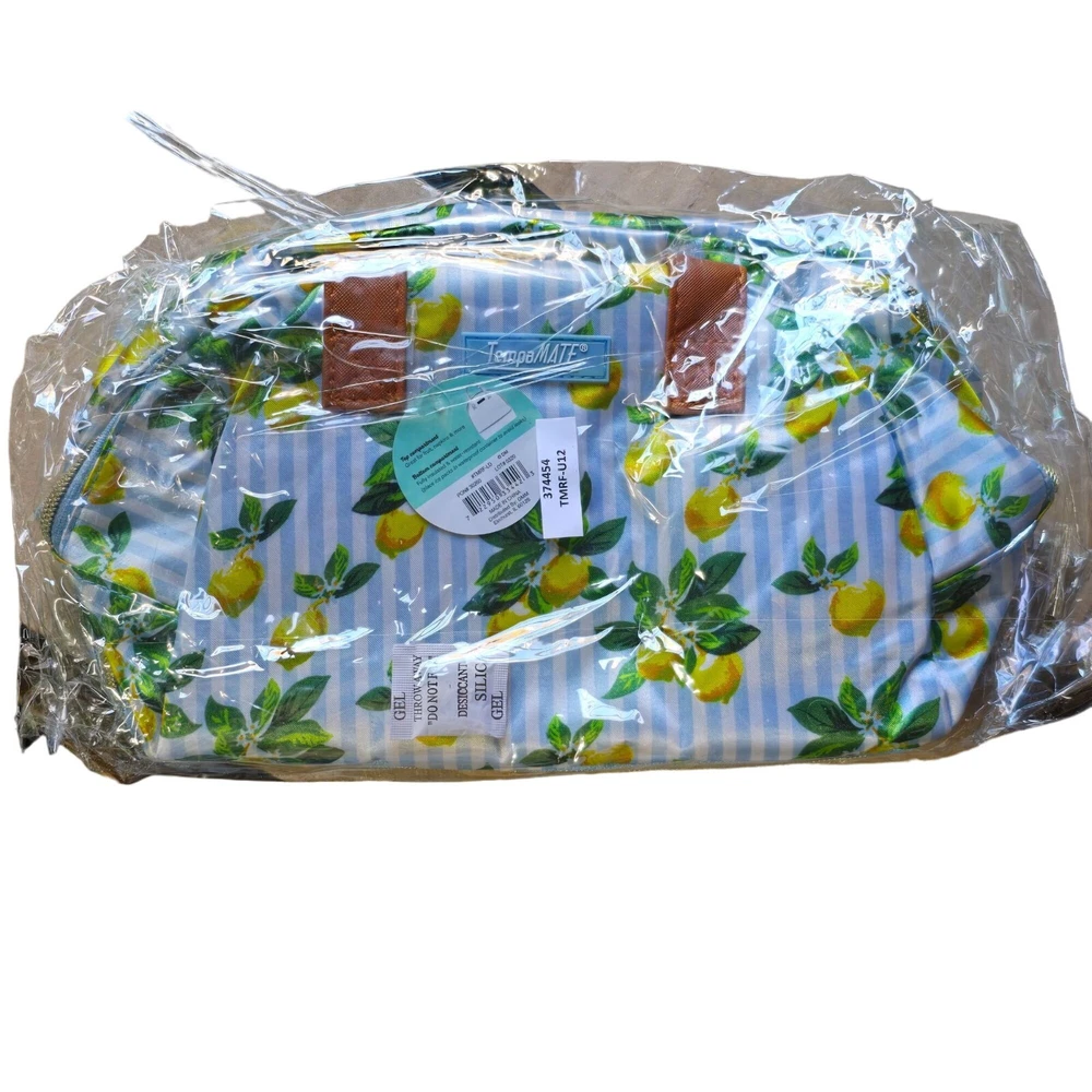 This lemon-print insulated lunch bag by TempaMATE is designed for those who prioritize style and functionality. Its premium insulation keeps food fresh, while a spacious interior and durable zipper closure offer practicality and convenience. • Insulated Interior • Zipper Closure • Lemon Print Design • Durable Handles • Easy to Clean • Spacious Interior 11.5"H x 10"W x 7.5"D Features: • Insulated, Multi Compartment Size: 11.5"H x 10"W x 7.5"D Condition: New With Tags NWT Please review all photos and descriptions closely before purchase, thank you! Smoke free workspace Please read the description for further details and measurements, Thank you!