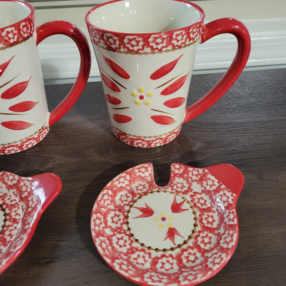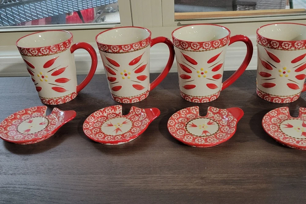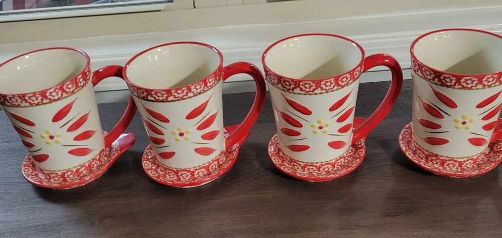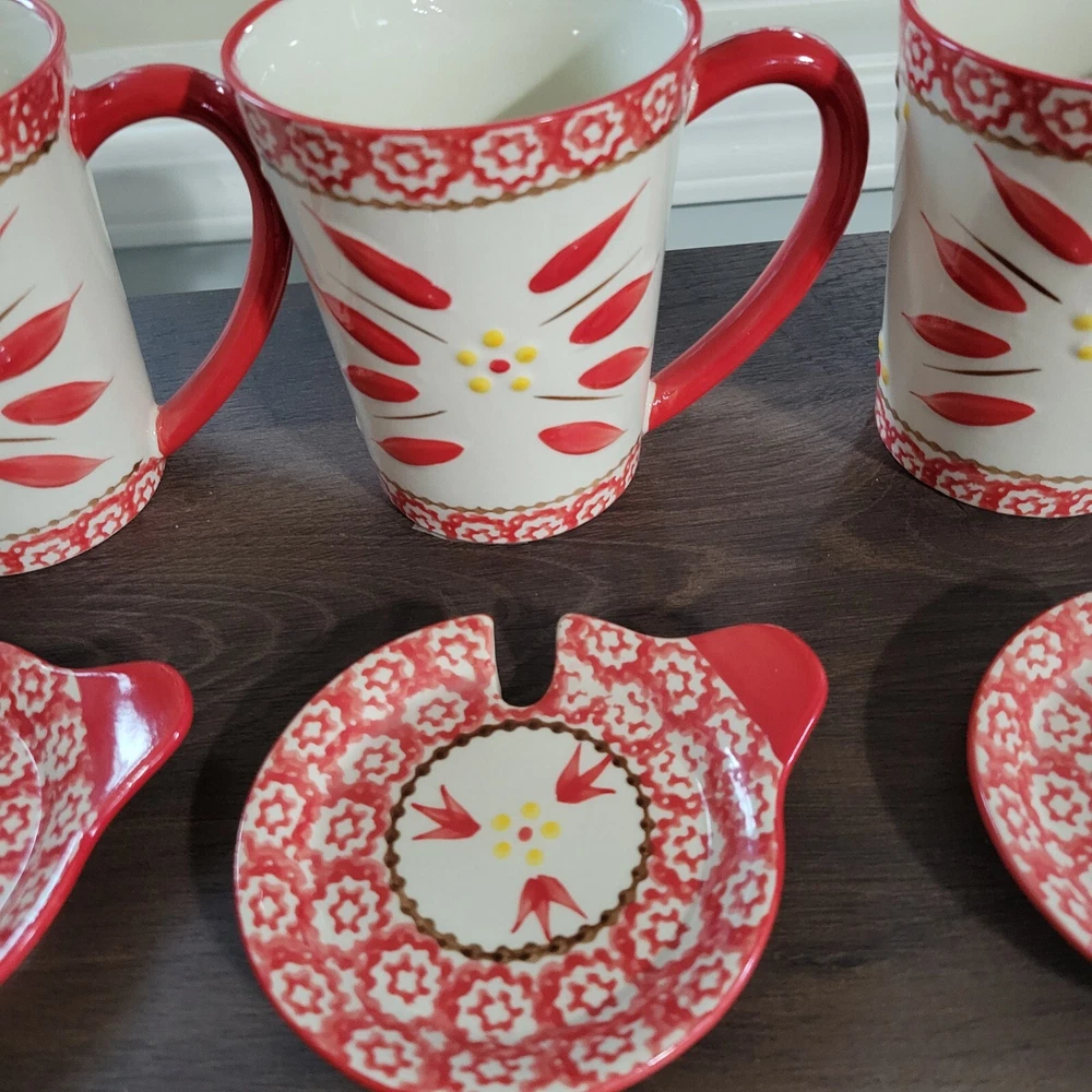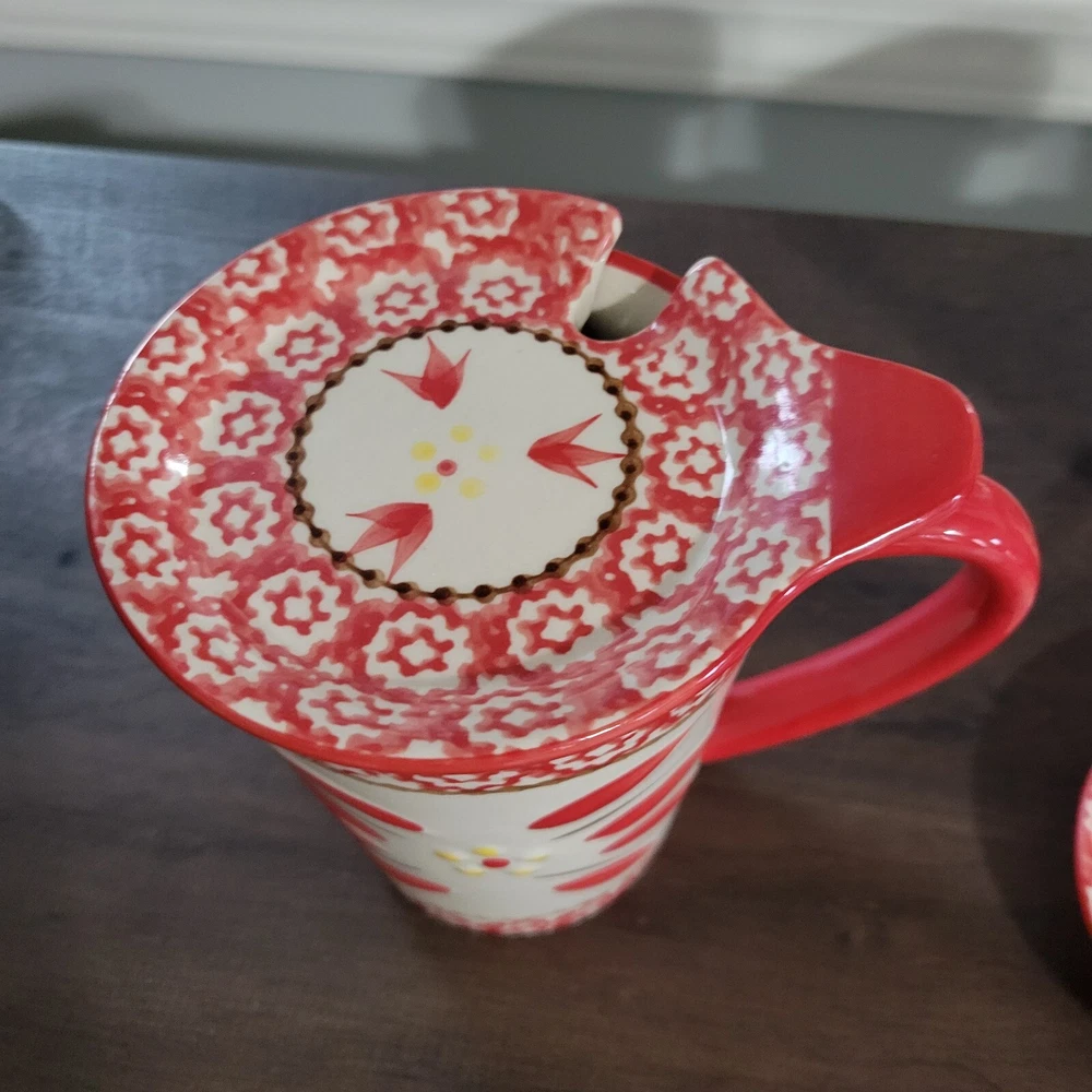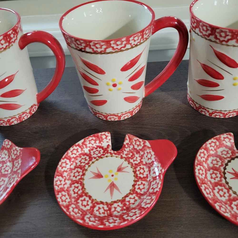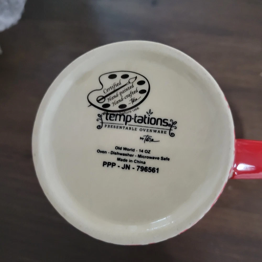 The Temptations 14 oz. Mug & Coaster/Lid Set features a charming Old World design in Cranberry color. Made of ceramic & porcelain, each coffee mug is hand-painted and includes a coaster and lid. Perfect for hot or cold beverages, this set mugs is ideal for all occasions. Coaster is good for teabag or spoon. Can be set on top to keep beverage hot with opening for spoon. Shipping will be calculated based on how many are chosen. I will make it as economical as possible. Please don't pay until I send an invoice with shipping.