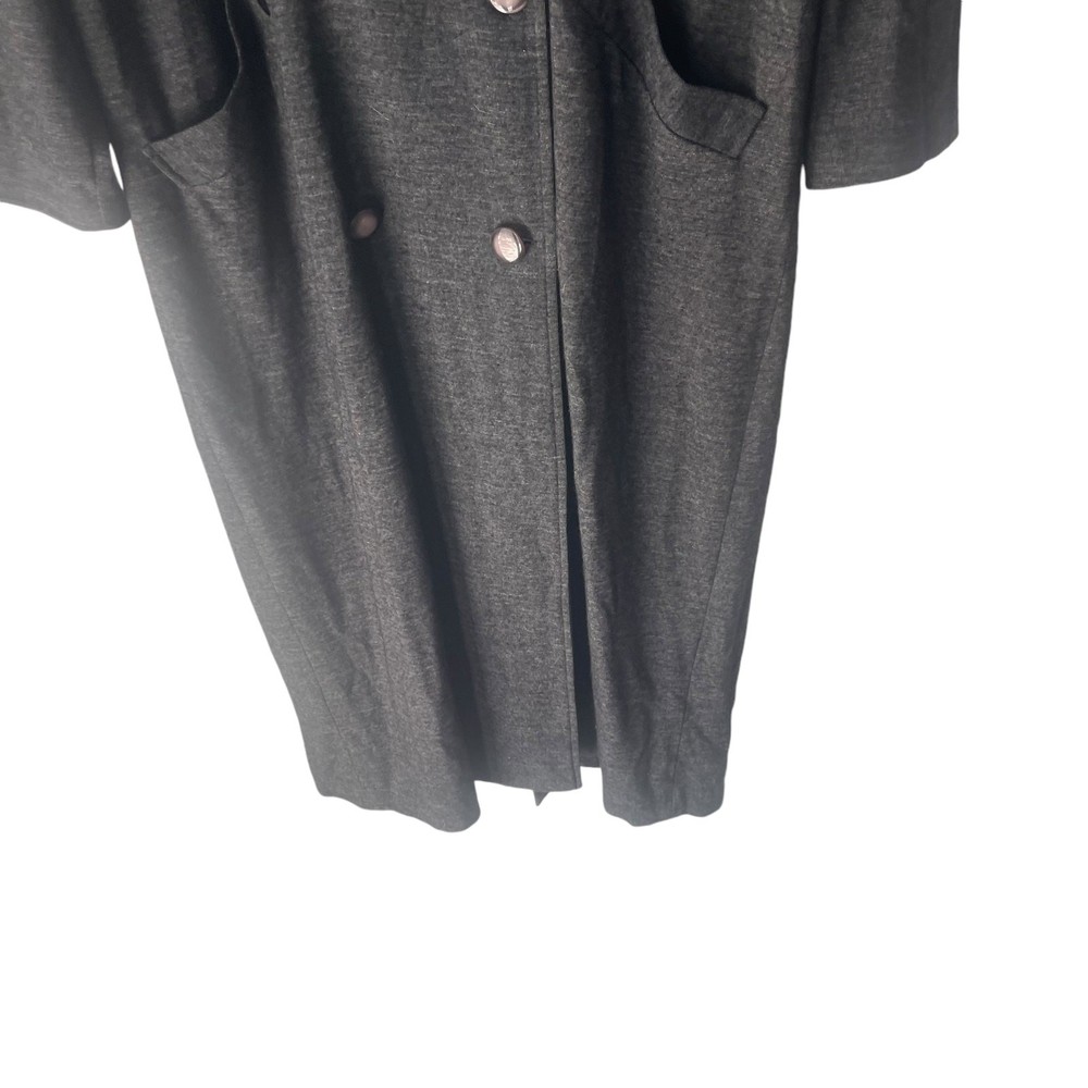 Outer Shell Material: Wool Vintage: Yes Handmade: No Personalize: No Seller Notes: “Item is in Excellent preloved condition” Size: XL Style: Trench Coat Jacket/Coat Length: Long Features: All Seasons, Bodywarmer, Collared, Lined, Oversized, Double-breasted Brand: Ten Eleven Garment Care: Dry Clean Only Insulation Material: Wool Season: Fall Theme: 90s, Classic, City, College, Work, Academia Fit: Classic Department: Women Pattern: Solid Closure: Button Type: Coat Size Type: Regular Color: Gray Sleeve Length: Long Sleeve Occasion: Business, Casual, Travel, Workwear Country of Origin: United States Lining Material: Polyester