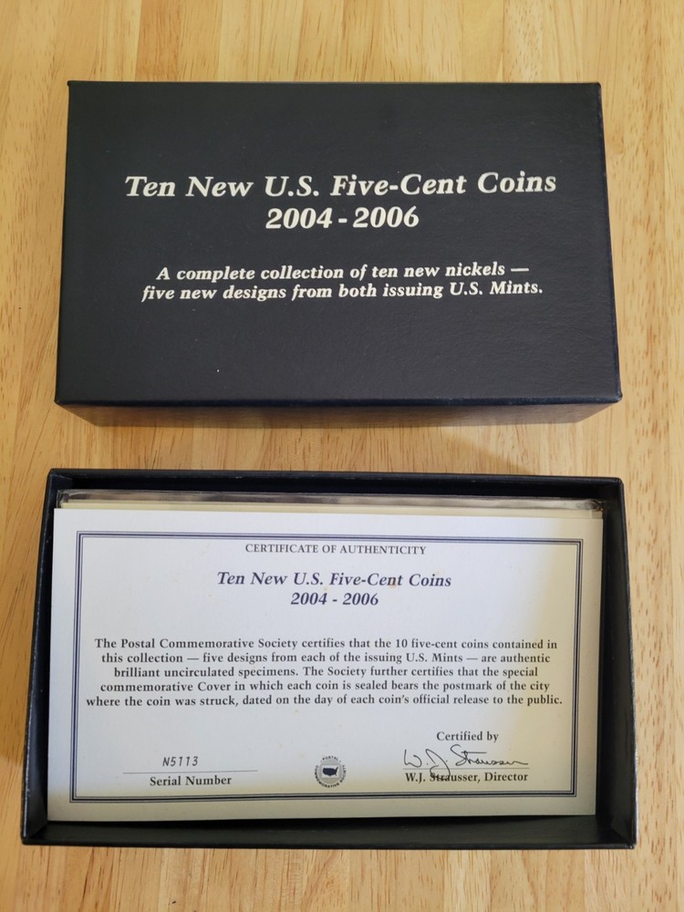 The product is a collection of ten new Jefferson nickels from the years 2004 to 2006, accompanied by U.S. stamps from the same location. The coins are uncertified and are of origin from the United States. This historical collection is a valuable addition to any coin enthusiast's portfolio, showcasing the iconic Jefferson design in a contemporary setting. All coins and stamps are Original from their purchase From PCS.
