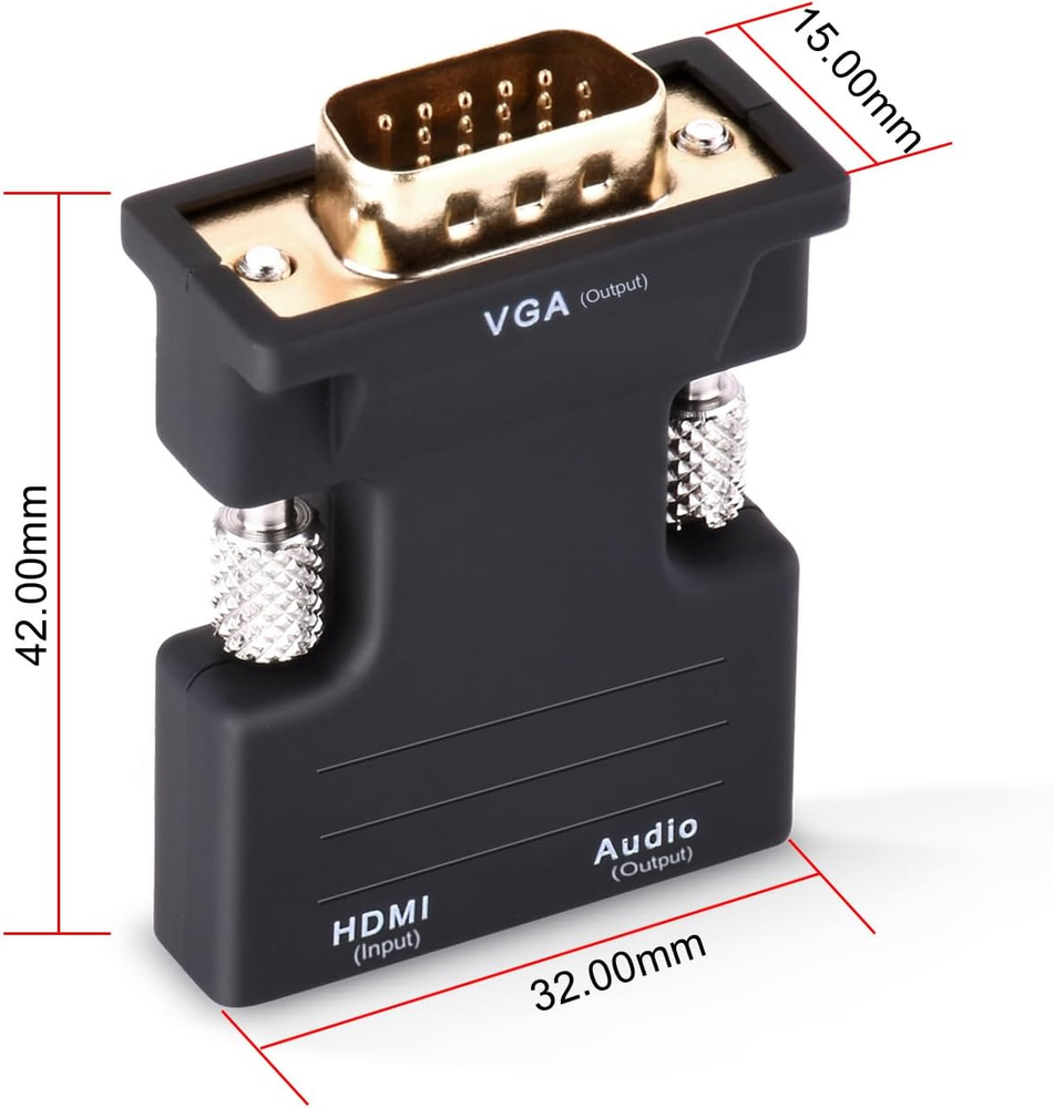 Store New Arrivals Add to Favorite View Feedback Contact Tendak Active 1080P Female HDMI to VGA Male Converter Adapter Dongle with 3.5Mm Stereo Audio Portable HDMI Connector for Laptop PC PS3 Xbox STB Blu-Ray DVD TV Stick Description Item model number AV-107-BK-US Item dimensions L x W x H 1.65 x 1.26 x 0.59 inches Color HDMI Female to VGA Male Product Dimensions 1.65 x 1.26 x 0.59 inches Connector Type HDMI Compatible Devices Projector, Laptop, PC Item Weight 0.64 ounces Is Discontinued By Manufacturer No Specific Uses For Product Monitor,Projector,Tv Manufacturer Tendak Female HDMI to VGA adapter connects an HDMI compatible device to a monitor or projector with VGA port by extra HDMI cable. Kindly Note: NOT BI-DIRECTIONAL - This HDMI VGA video converter only converts HDMI (Female) signal TO VGA (Female). Converts HDMI digital signal to VGA analog signal; 3.5mm audio port sends audio to speakers or a display Gold-plated connectors is compatible with desktop, laptop, Ultrabook, notebook, DVD, media player, cable box, or other devices with HDMI port Supports 720p and 1080p full-size high-definition resolution; Support HDMI V1.4, 3D Plug & Play No driver needed, No external power required. When connecting your monitor, if put your monitor out of range or monitors won't show anything. Please adjust the resolution of your input source and monitor to below 1080P. If the product does not work,please contact us at any time, we will definitely solve it for you within 24H Product Description Work Home Theater Meeting ABOUT US We offer the best prices around on high quality products. Our E-store includes media such as books, movies, music and games while offering electronics, toys, sporting apparel, clothing, tools, general home, garden items and more. SHIPPING We are always working hard to ensure your package arrives as soon as possible. Please understand that some factors like weather, high postal traffic, and the performance of shipping companies are outside of our control. We offer free shipping to the lower 48 states and ship within 2 business days of payment, usually sooner. We do not accept P.O. Boxes. Please provide a physical address. RETURNS We offer a 30-Day Return Policy on items which you are not completely satisfied with. You have the option for a full-refund or an exchange of the item. No returns are available on items shipped outside of the USA. PAYMENT We accept PayPal. CONTACT US This page content is yet to come Please ad us to your favorite seller and visit again later Thank You CUSTOMER SATISFACTION We try our very best to make sure every customer is completely satisfied. If there's a problem, message us! We're happy to help.