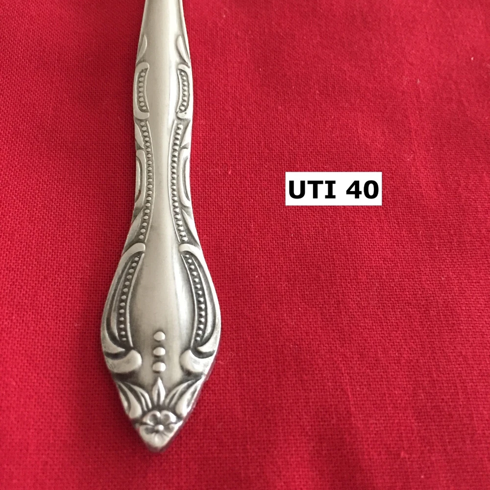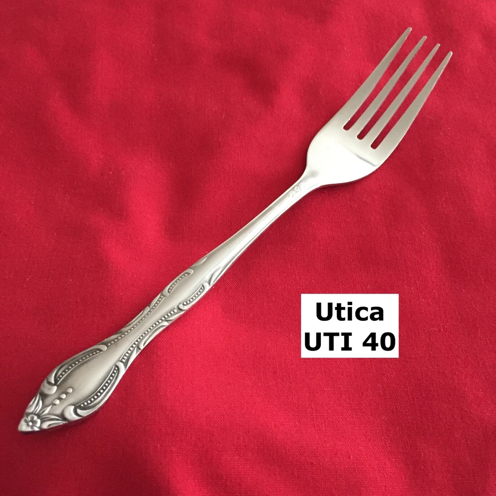 Manufacturer: Utica Pattern: UTI 30 - Beaded Edge - Floral Tip Type: Stainless Steel Piece: Dinner Fork Length: 7"
