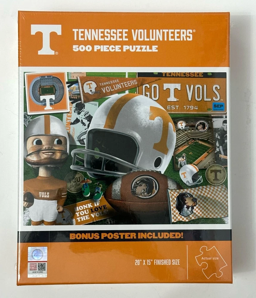 Tennessee Vols Volunteers Football NCAA Jigsaw 500 piece puzzle with poster included. Officially Licensed Collegiate Products. NEW