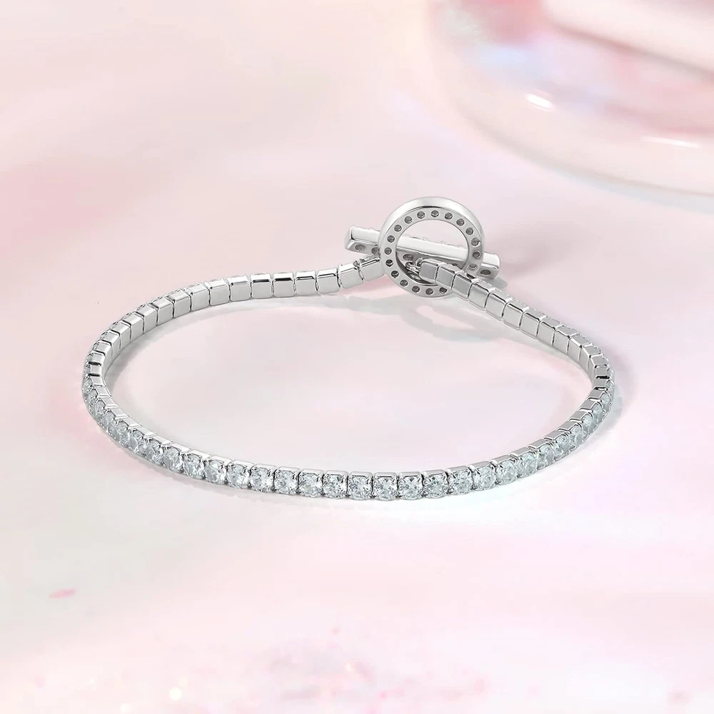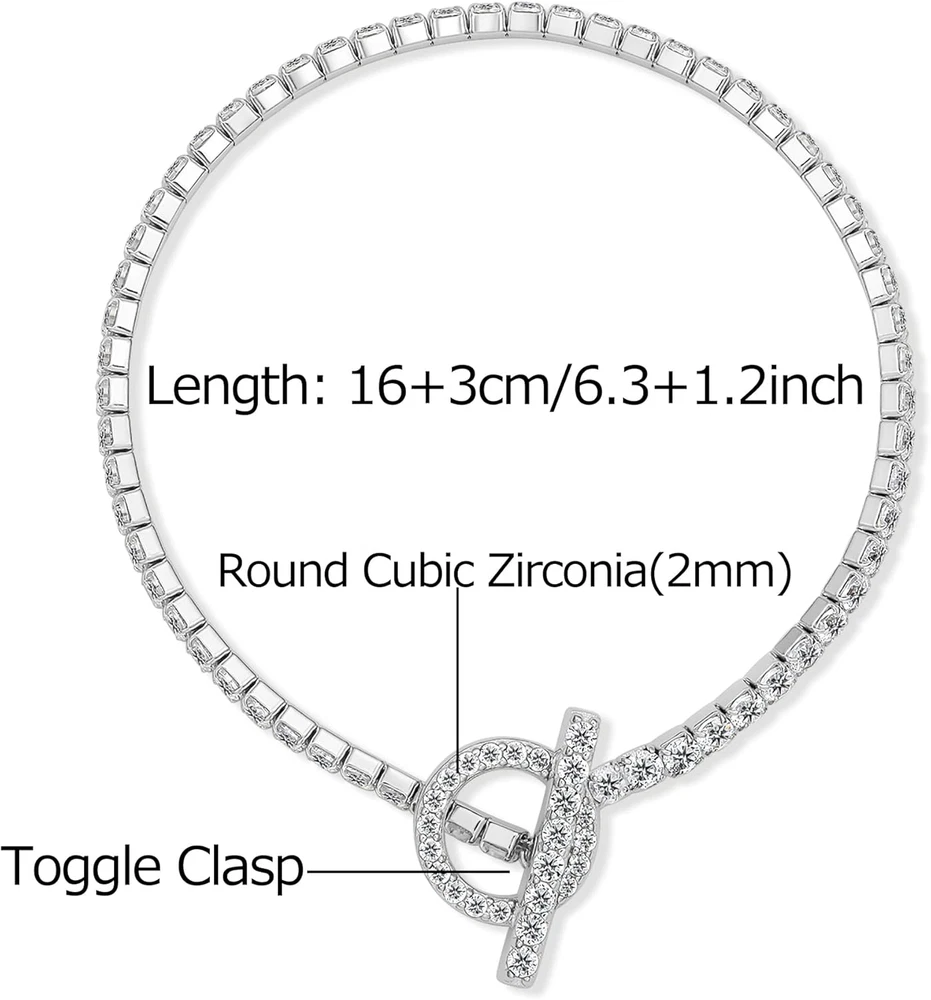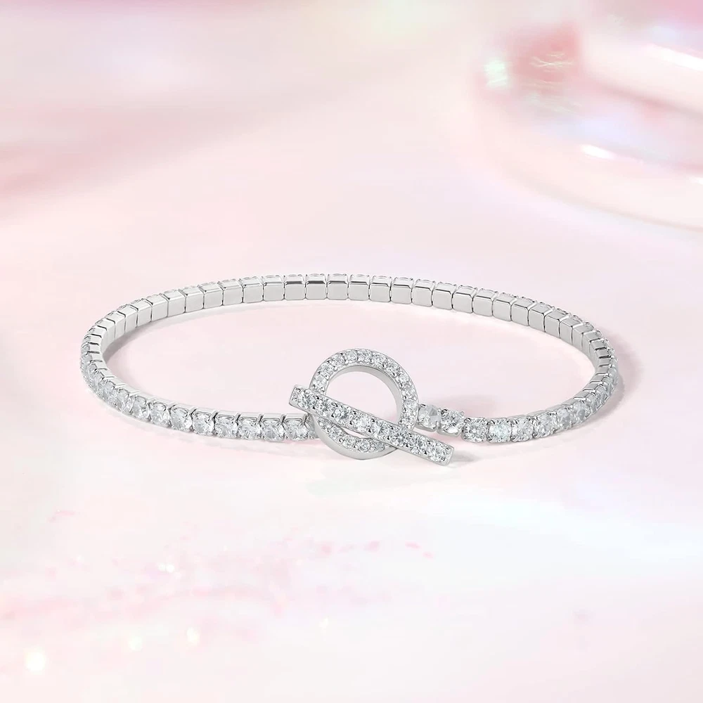 Tennis Bracelet Cubic Zirconia Toggle Bracelet Silver Bracelets for Women