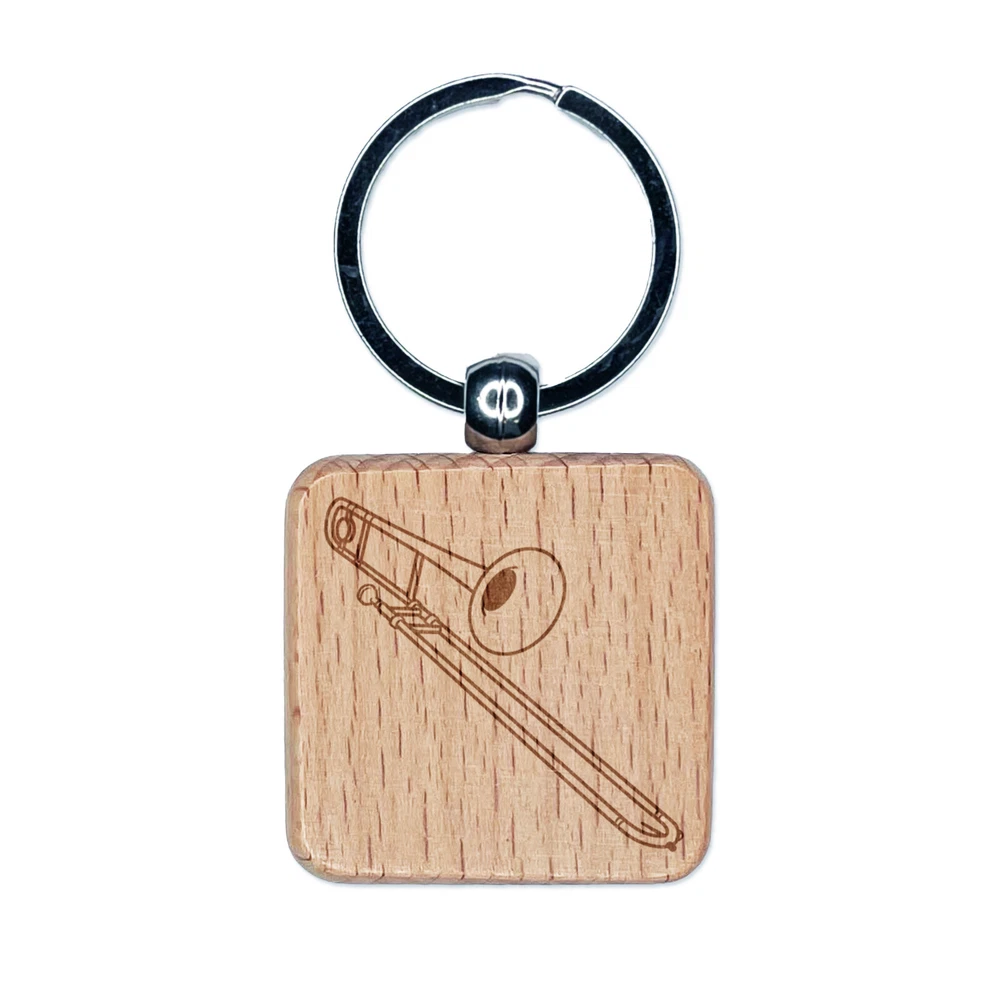 Tenor Trombone Brass Musical Instrument Engraved Wood Square Keychain Tag Charm