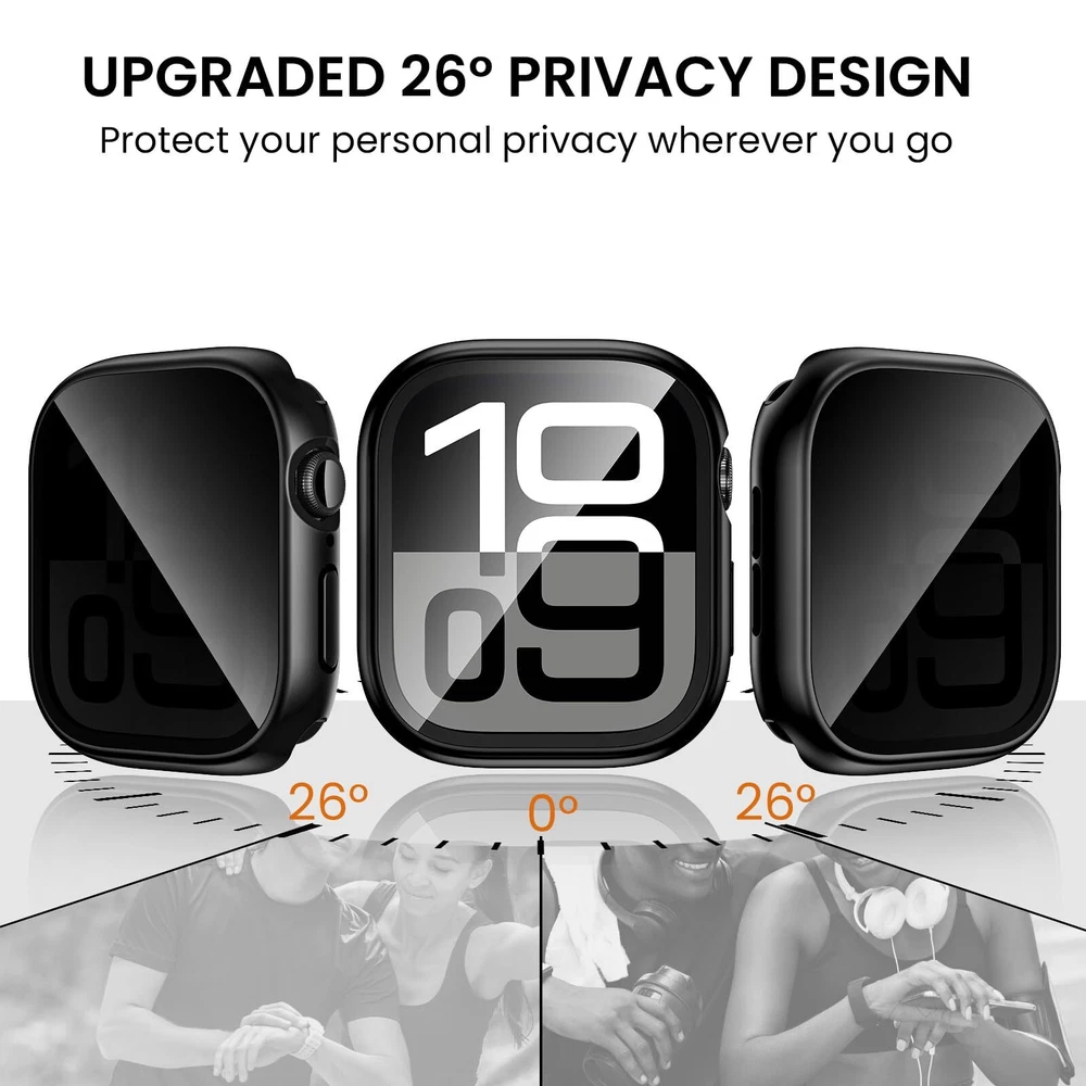 Tensea (2-in-1 for Apple Watch Screen Protector Case Series 10 SE 9 8 7 6 5 4, W Features: Please choose correct SIZE variation befor order: The Tensea privacy screen protector with back cover is available in the following Apple watch sizes and models: 46mm Apple watch Series 10, 42mm Series 10, 44mm 6/5/4/SE(2024)/SE 3rd(2023)/SE 2nd(2022)/SE(2020) , 40mm 6/5/4/SE(2024)/SE 3rd(2023)/SE 2nd(2022)/SE(2020) . Tensea customized Apple watch case in different sizes(mm) to fit various Apple watch sizes(mm). Please select the right size for your Apple Watch Anti-peeping Design: The upgraded privacy case can effectively protect your personal, private and sensitive information from prying eyes in public.The screen is only visible to persons directly in front of screen. Made of hard PC and 9H tempered glass with smooth touching, bring you a comfortable and secure wearing Daily Waterproof: The apple watch screen protector built-in seal ring keeps water away from screen. Water and fog will not enter the screen and affect the touch screen, which means you no longer need to remove the case and wipe the water repeatedly after showering, washing hands, exercising, rain, etc [NOTE: Not suitable for deep waterproofing, such as diving and swimming, etc] 360° Protection: This compatible iWatch face cover which can all around protect the front and back of your watch from dust, dirt, scratches and damages. The HD clear tempered glass screen protector keeps the original touch experience. The sweatproof watch case is easy to install without removing the band Easy Installation: There are installation instructions on this product page and product package.【Easy Removal】- A removal tool is included to remove the case without damaging the watch.【What You Get】1 x Apple Watch front case, 1 x back cover, 1 x removal tool, 1 x cleaning tool. ( Smart watch, band and charger are not included ) If there are any questions with it, please get in touch with us without hesitation Features: Please choose correct SIZE variation befor order: The Tensea privacy screen protector with back cover is available in the following Apple watch sizes and models: 46mm Apple watch Series 10, 42mm Series 10, 44mm 6/5/4/SE(2024)/SE 3rd(2023)/SE 2nd(2022)/SE(2020) , 40mm 6/5/4/SE(2024)/SE 3rd(2023)/SE 2nd(2022)/SE(2020) . Tensea customized Apple watch case in different sizes(mm) to fit various Apple watch sizes(mm). Please select the right size for your Apple Watch Anti-peeping Design: The upgraded privacy case can effectively protect your personal, private and sensitive information from prying eyes in public.The screen is only visible to persons directly in front of screen. Made of hard PC and 9H tempered glass with smooth touching, bring you a comfortable and secure wearing Daily Waterproof: The apple watch screen protector built-in seal ring keeps water away from screen. Water and fog will not enter the screen and affect the touch screen, which means you no longer need to remove the case and wipe the water repeatedly after showering, washing hands, exercising, rain, etc [NOTE: Not suitable for deep waterproofing, such as diving and swimming, etc] 360° Protection: This compatible iWatch face cover which can all around protect the front and back of your watch from dust, dirt, scratches and damages. The HD clear tempered glass screen protector keeps the original touch experience. The sweatproof watch case is easy to install without removing the band Easy Installation: There are installation instructions on this product page and product package.【Easy Removal】- A removal tool is included to remove the case without damaging the watch.【What You Get】1 x Apple Watch front case, 1 x back cover, 1 x removal tool, 1 x cleaning tool. ( Smart watch, band and charger are not included ) If there are any questions with it, please get in touch with us without hesitation eBay integration by