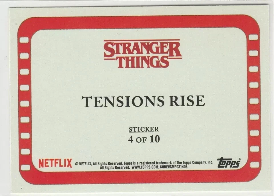 Tensions Rise #4 SP Eleven Millie Bobby Brown Stranger Things 2018 Season One Netflix sticker subset chase insert short print personal stock image centering of card may vary compared to listed image