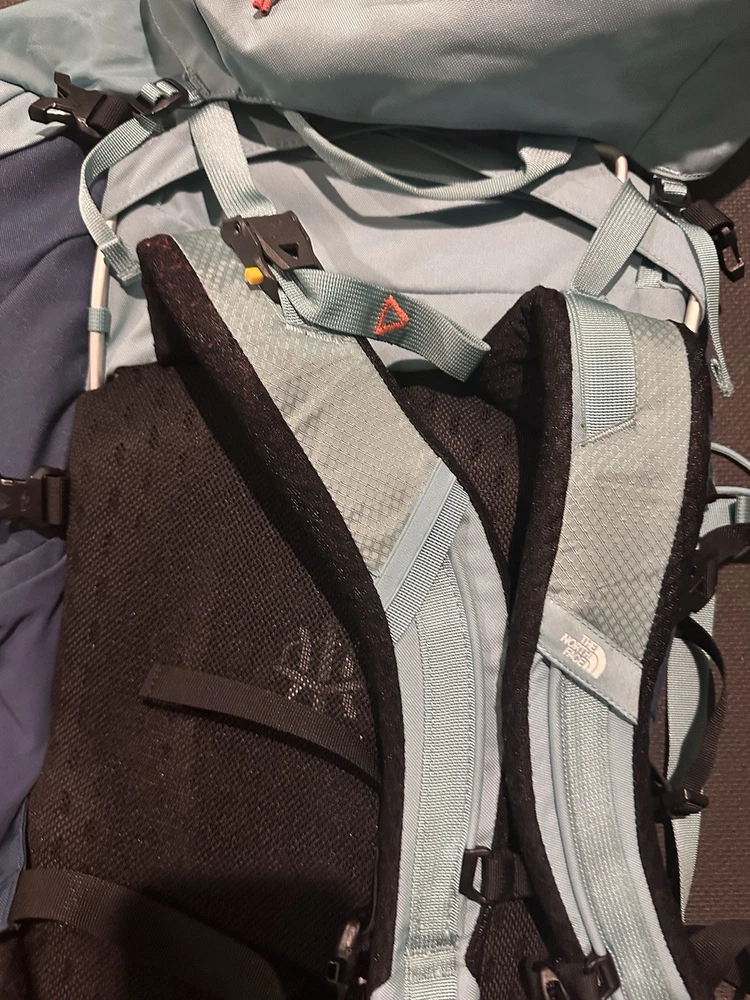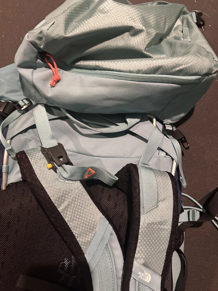 Trim Material:PolyesterFrame Material:AluminumDepartment:WomenMaterial:PolyesterBrand:The North FaceHandle/Strap Material:PolyesterVintage:NoSport/Activity:BackpackingClosure:Buckle