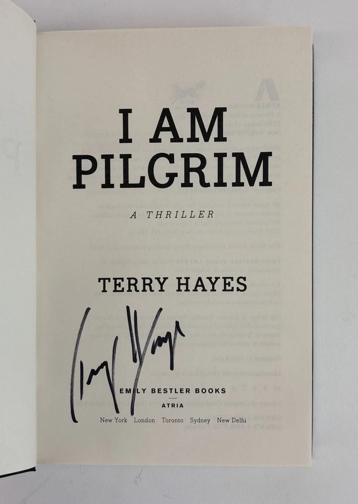 I AM PILGRIM [Signed] Author: Hayes, Terry Title: I AM PILGRIM [Signed] Publication: New York, New York: Emily Bestler Books - Atria, 2014 Edition: First Edition, First Printing Description: Octavo, 612 pages. In Very Good condition with Near Fine condition dust jacket. Spine is black and gold with white lettering. Dust jacket protected by mylar covering, price uncut: "$26.99" on front flap. Boards have mild shelving wear along extremities. Signed flat by Terry Hayes on title page. Shelved in hallway. Seller ID: 1391945 Subject: Literature Welcome to the eBay store of Second Story Books! DC's Oldest Rare and Used Bookstore, Second Story Books operates two open shops in the Washington D.C. metropolitan area. We have an extensive internet presence and provide accredited appraisals member ASA. This listing was created by Bibliopolis.