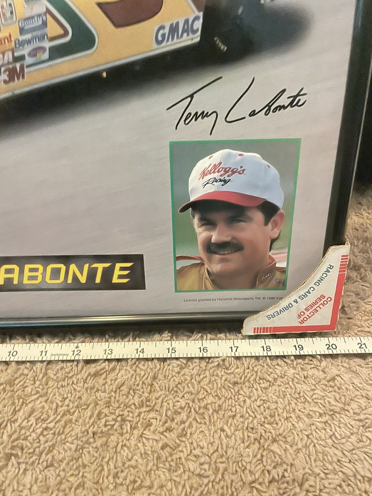 This 20x16 framed picture features Terry Labonte in his iconic #5 Kellogg's Corn Flakes car, perfect for any NASCAR fan. The captures the spirit of racing with vibrant colors and intricate detailing. A great addition to any sports memorabilia collection, this original print is signed by the legendary driver himself. Add some excitement to your walls with this unique piece of racing history.