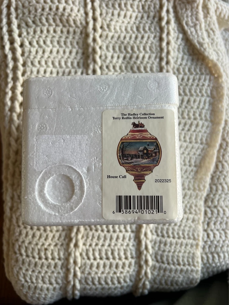 Terry Redlin ornament with his painting "House Call" featured. The Hadley Collection Heirloom ornament. Purchased in his hometown of Watertown, SD. Includes foam box. "House Call" 2022325
