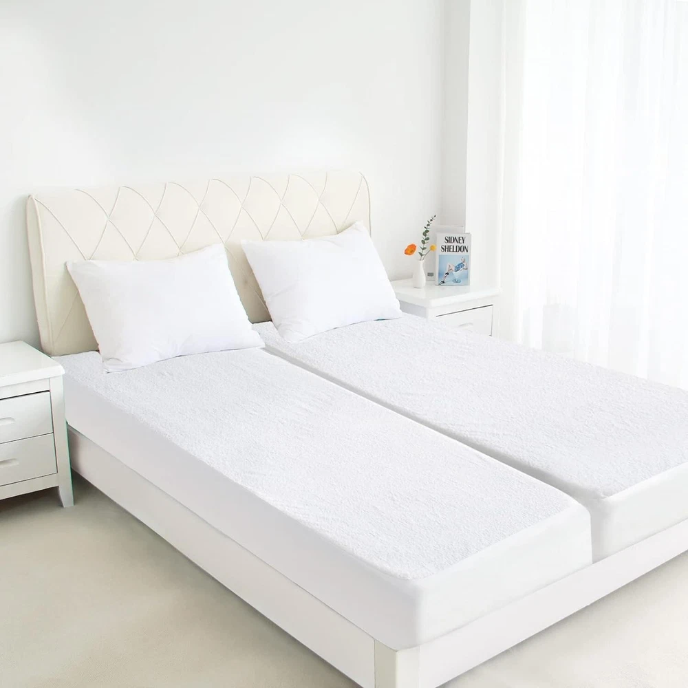 Product description Ultra Soft & Breathable Fabric: Split king mattress protector top side is made from breathable terry, which is a skin friendly and ultra soft fabric. With the waterproof membrane laminated back, it can protect your mattress from spills, liquids and stains, especially suitable for those with kids, pets, or elderly. 100% Waterproof & Noiseless: This split king mattress protector is lined with premium waterproof material (TPU) to prevent leakage. And we perfectly control the thick of membrane, it remains quiet however you turn. Easy Care & Machine Washable: Machine washable and tumble dry a low setting. We would recommend purchasing 2 split king mattress cover protector, so you will have a replacement when accidents occur. Strong Elastic & 360° Snug Fit: Our split king mattress protector measures 2x(39 in x 80 in). It's easy to install. Our waterproof mattress protector are available in a range of sizes: Twin, Twin XL, Full, Full XL, Queen, King, California King, Slit King. You can always find the one that you need. Springspirit's Life-time Guarantee: Springspirit's quality you can trust. If our split king mattress protector does not meet your needs for any reason, replacement or money back, no questions asked! Handling & Delivery We offer Free Shipping on all orders! Your order will be shipped within 2 working days after receiving payment. In an unlikely event that your order is lost or damaged in transit, it is eligible for full refund or replacement. We ship to continental US address ONLY, we are unable to ship to PO Boxes or APO/FPO addresses. Return Policy If you are not satisfied when you receive your item, please contact us for a replacement or money back. If the item is defective, we will send you a replacement without any extra charge, or offer a full refund after we receive the defective item, but return shipping should be paid by buyer. All items qualify for returns within 30 days of receipt. Returned packages must be the original package. Contact us We will respond emails within 24 hours, within 36 hours on weekend.