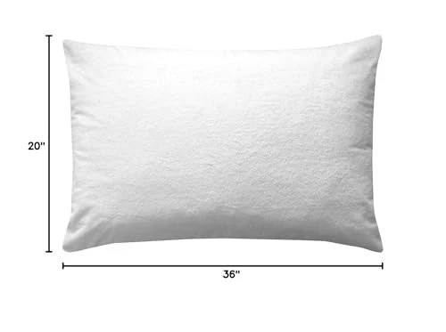 The Terry Top Waterproof Pillow Protector utilizes double barrier technology to keep your pillow clean from spills and moisture. A soft cotton blend loop terry top absorbs dampness while also providing a soft comfortable layer between you and your pillow. The second polyurethane layer provides the ultimate barrier allowing no moisture to seep through. A side zipper closure seals the pillow in tight and keeps it in place while blocking other dirt and allergens. This king size waterproof pillow protector measures 36 x 20 and will fit any king pillow. This listing is for 1 pillow protector only. WATERPROOF - Waterproof pillow protector blocks liquids and spills from reaching your pillow. SOFT TERRY TOP - Soft and comfortable top terry layer absorbs dampness and won’t make noise when sleeping. BLOCKS MOISTURE - Second layer features polyurethane to keep moisture from ruining your pillow. TOTAL ENCASEMENT - Zipper closure seals pillow tight inside for a complete barrier. Keeps dirt and allergens out. KING SIZE - Standard pillow protector measures 36 x 20 and is machine washable.