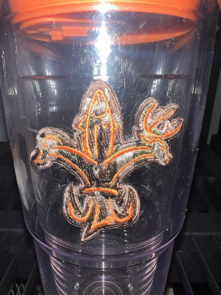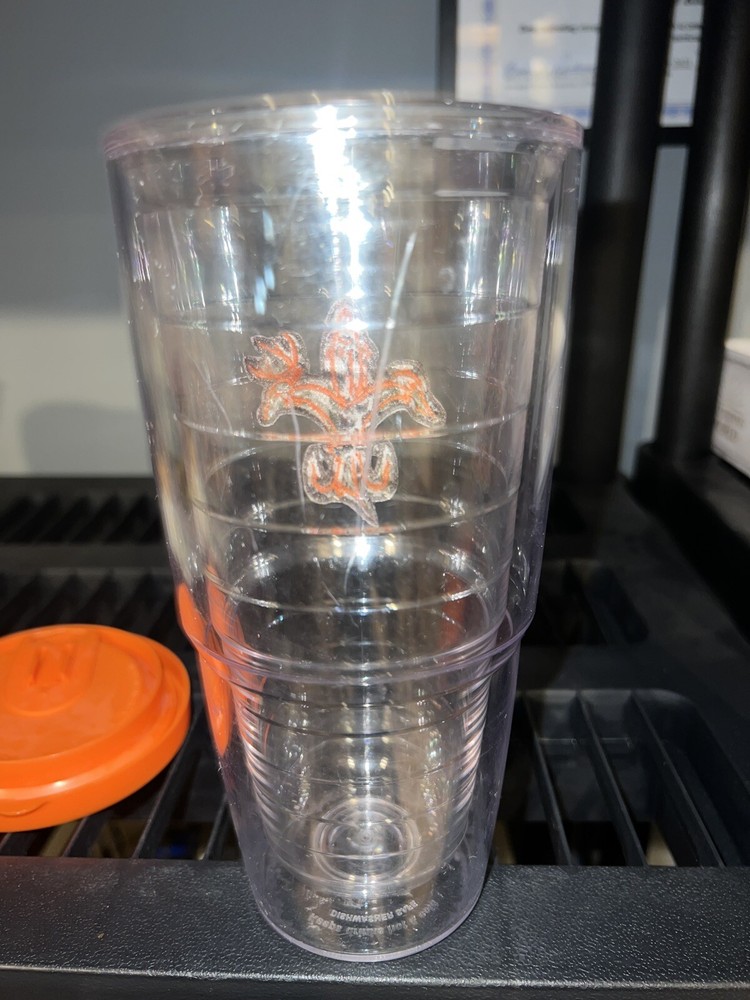 The Tervis Tumbler New Orleans Saints Camo Hunting 24oz Acrylic Double Walled is a stylish and durable tumbler featuring a clear design with a New Orleans Saints theme. The tumbler has a capacity of 24 oz and is made of plastic material, making it lightweight and easy to handle. Its double-walled construction helps keep beverages at the desired temperature for longer periods of time. This tumbler is dishwasher safe and comes with a lifetime manufacturer warranty, ensuring long-lasting quality and performance. Perfect for fans of the New Orleans Saints or anyone looking for a reliable and eye-catching drinking glass. * has some minor marks but otherwise perfect