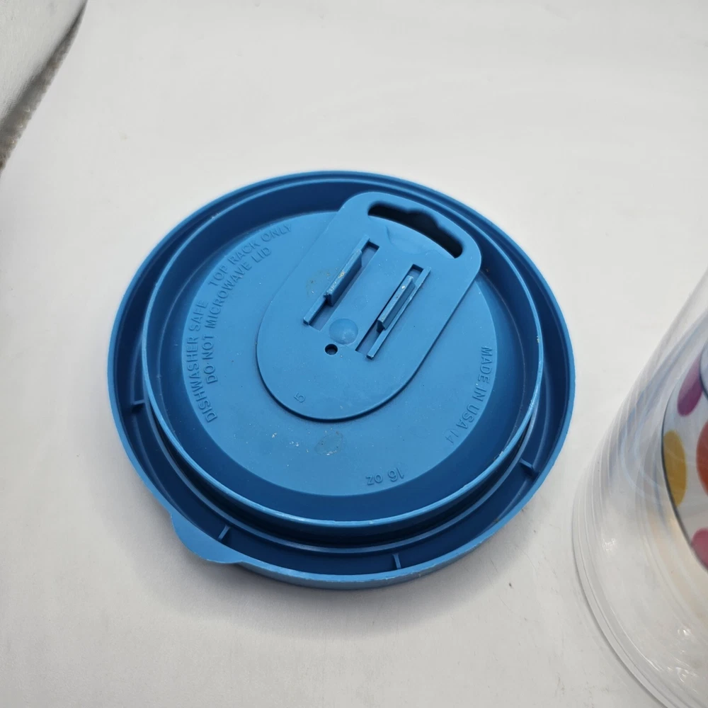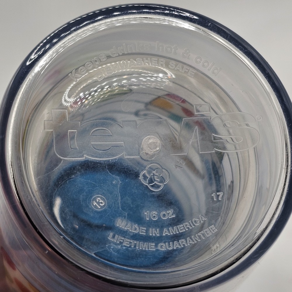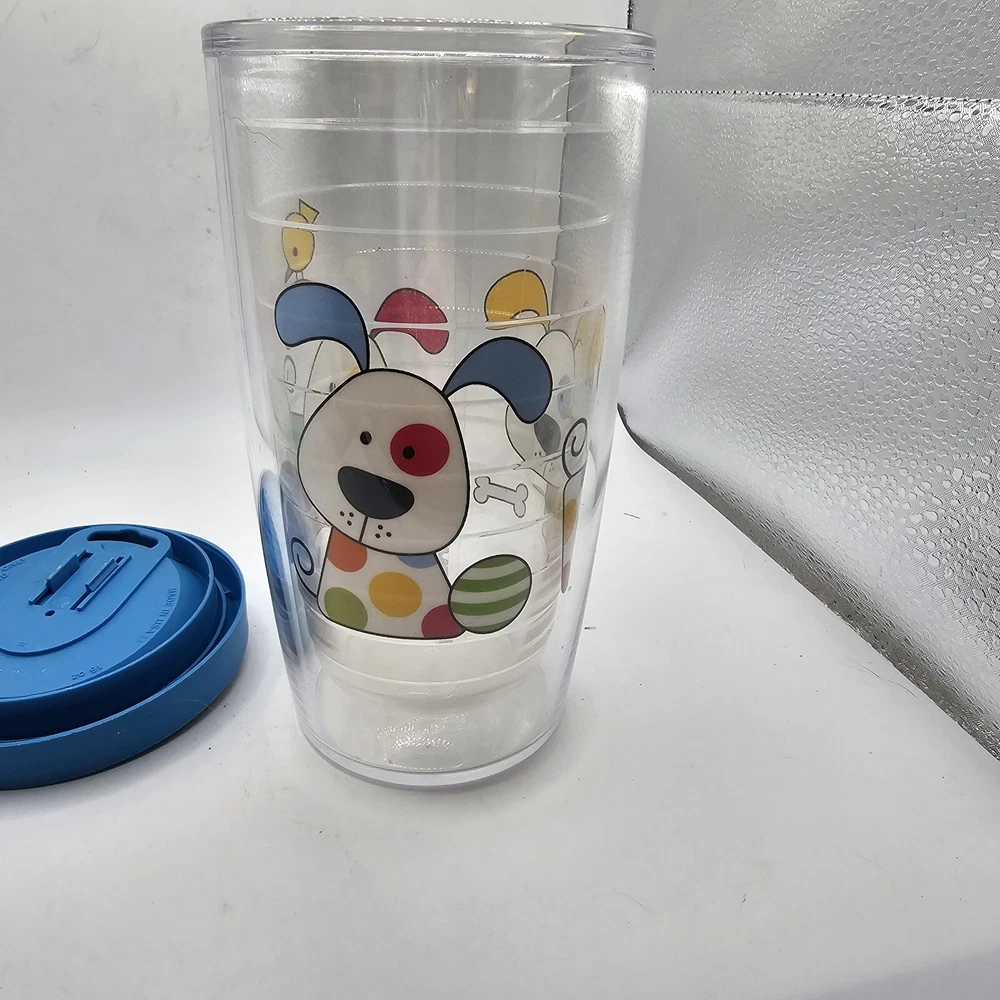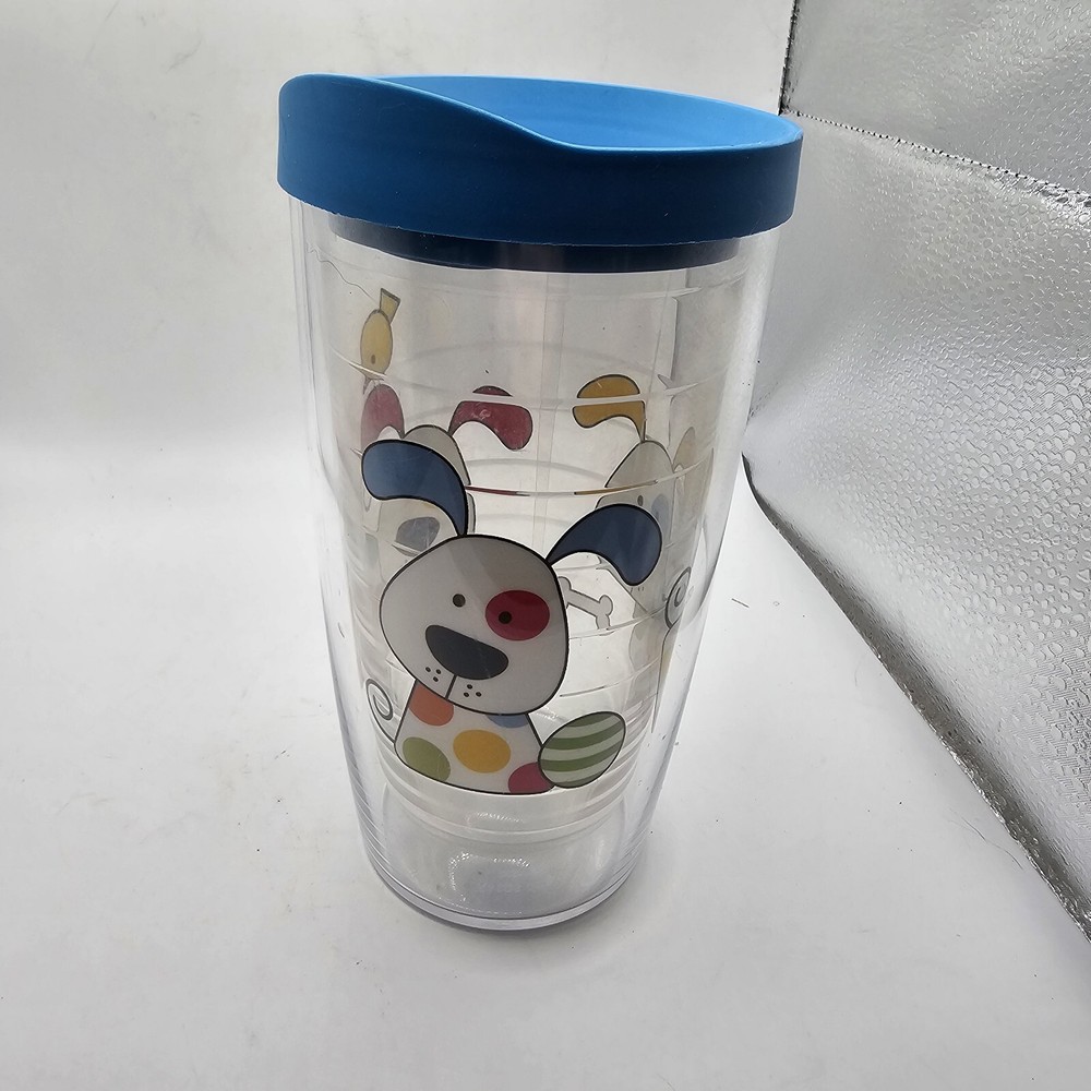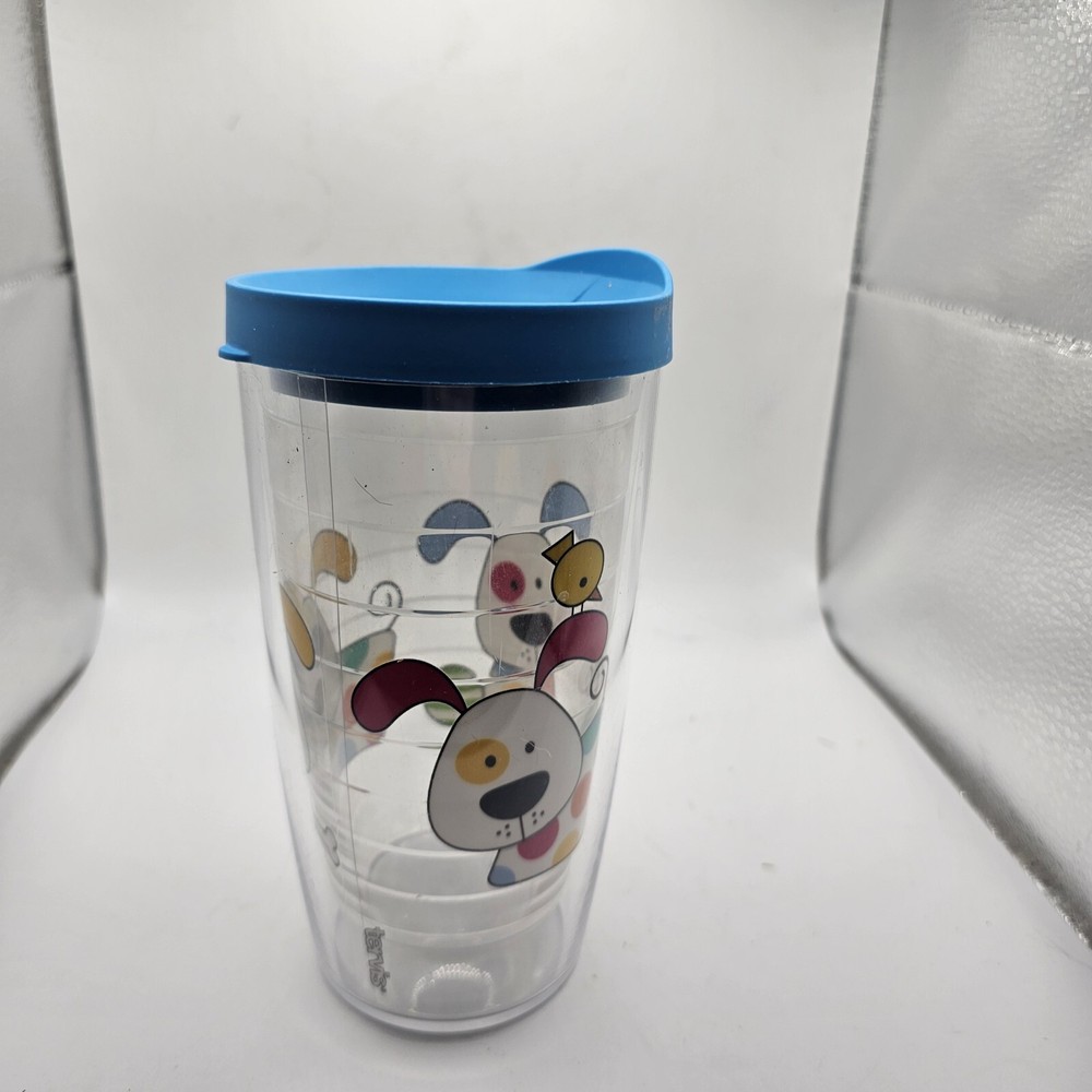 This is a 16 oz Tervis tumbler featuring a playful polka dot pattern with puppies, bones, balls, and a bird design. Made of BPA-free plastic, this multicolor tumbler is perfect for travel and on-the-go use. The set includes one tumbler, making it a fun and practical addition to your glassware collection.