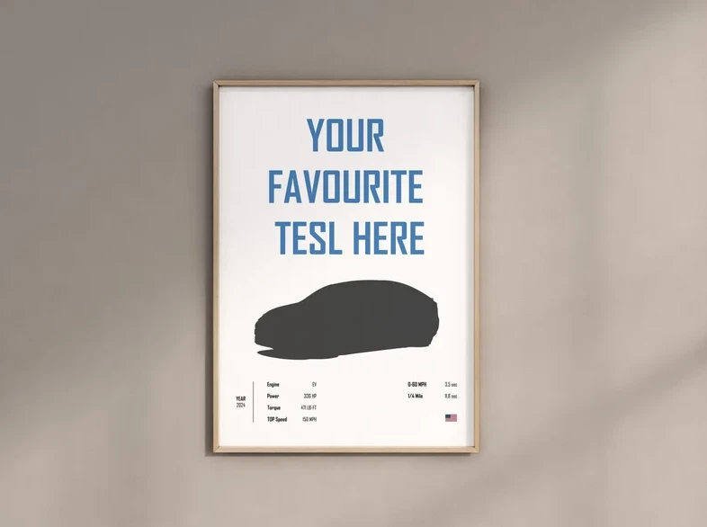 Tesla Custom Car print Digital poster Gift for Him Boyfriend Valentines day