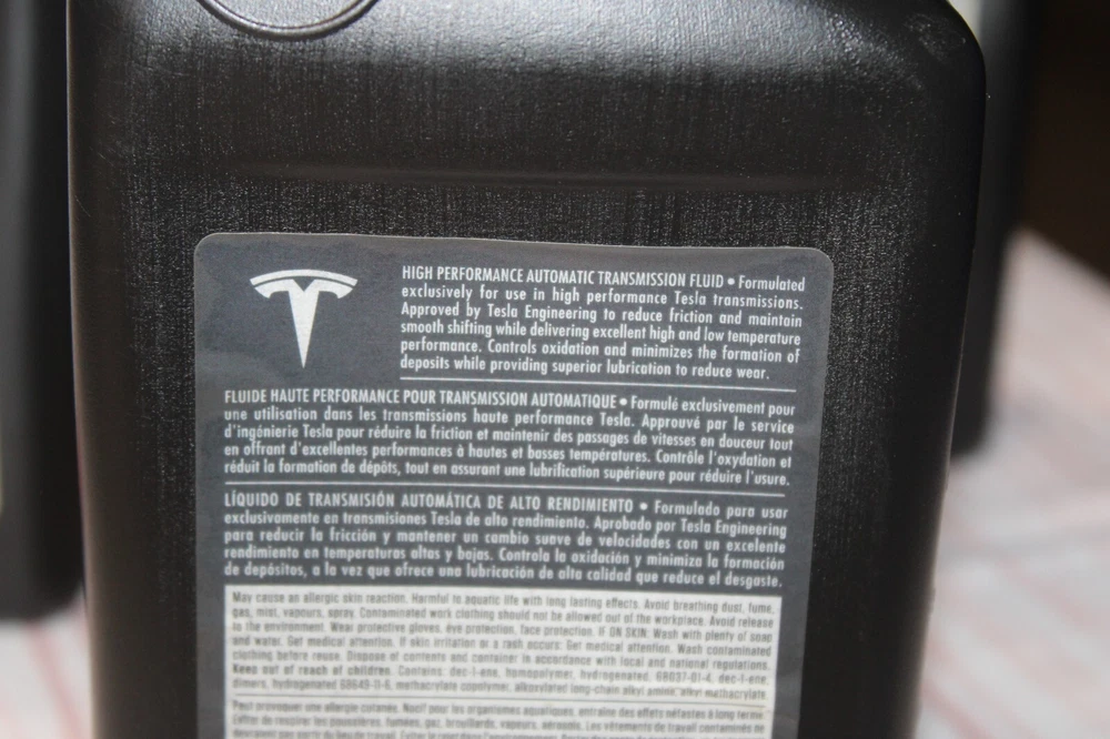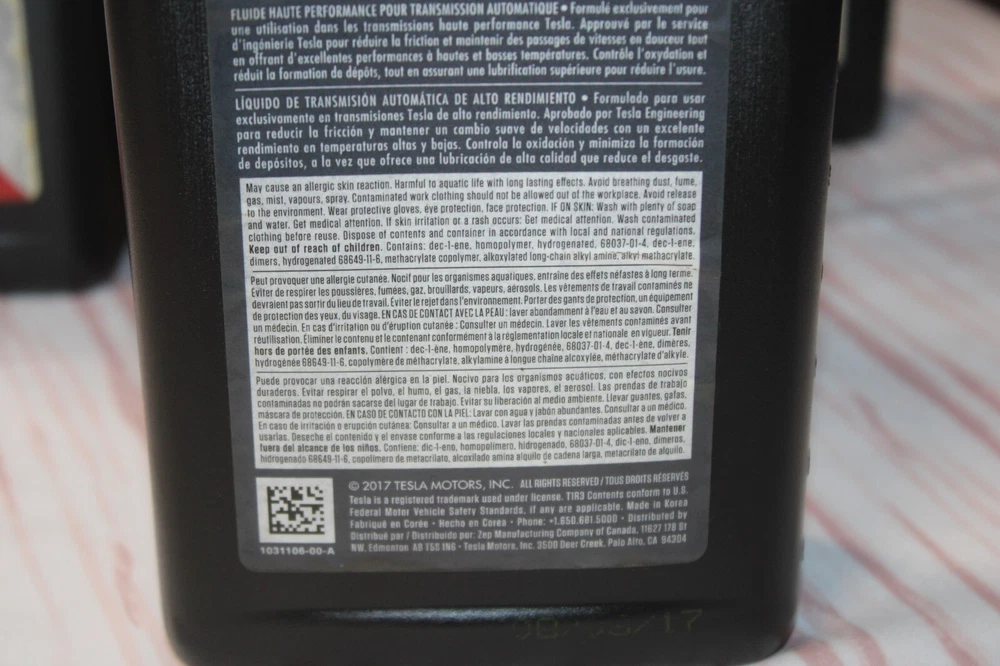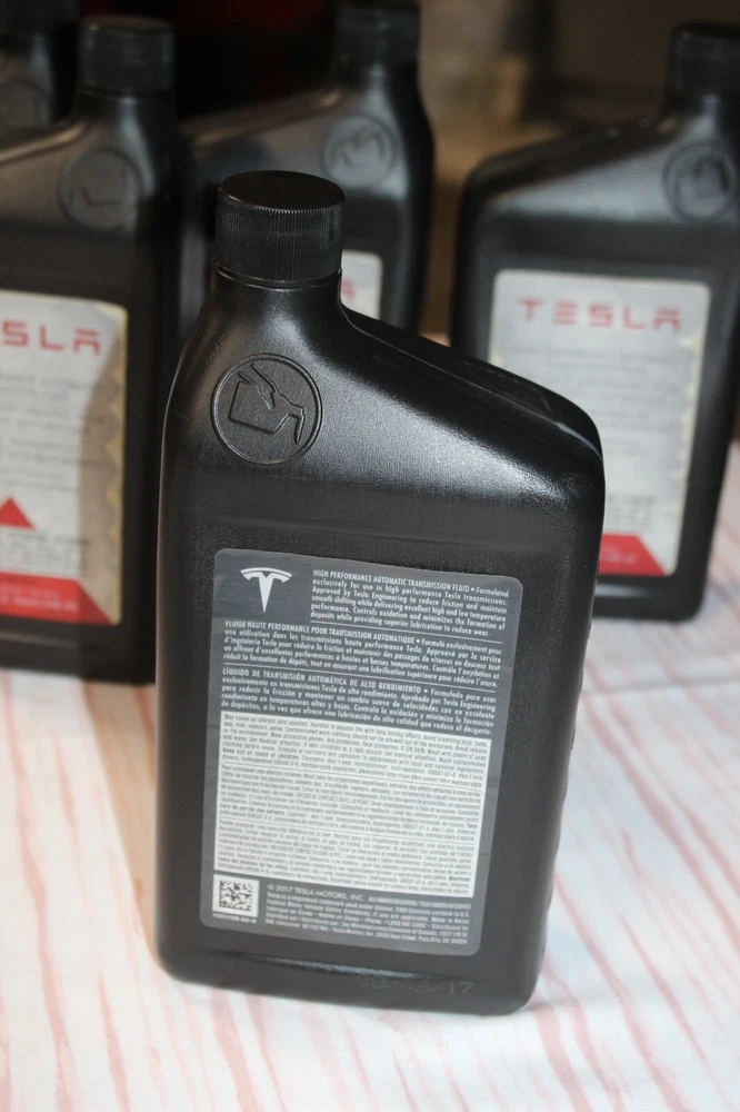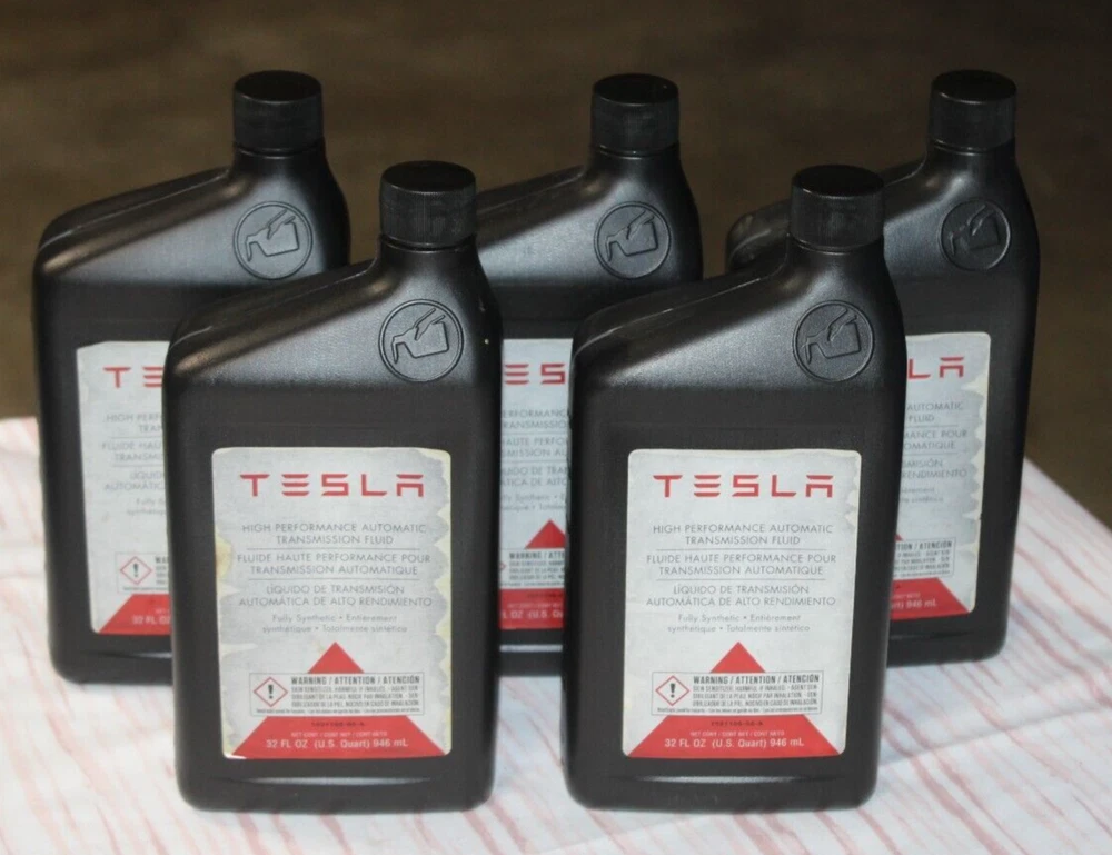 Tesla High Performance Automatic Transmission Fluid Full Synthetic 5 U.S. Quarts Model No. 103110600A Includes 5 individual bottles Brand New Sealed Bottles Refer to pictures PLEASE e-mail me with any questions or for additional pictures. FREE SHIPPING In the US. Thank you for your interest and have a great day.