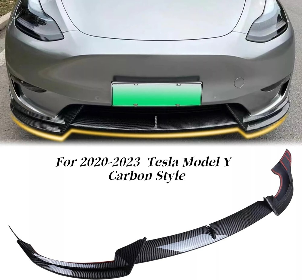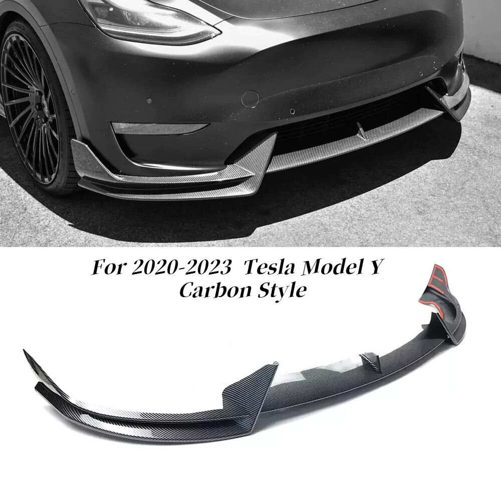 For Tesla Model Y 2020-2023 Carbon Style ABS Front Bumper Lip Spoiler Splitter Product Description PACKAGE INCLUDED: 1set in 3pcs GT-Style Front Lip Spoiler Come with Basic Screws FITMENT: Fits For Tesla Model Y 2020-2023 SPECIFICATION: Type:Front Lip Spoiler Material:ABS Color: Carbon Fiber Style Fitment Type: You need to Drill Holes With Self-Tapping Screws FEATURE: Direct Fit. Easy install and durable use. Great quality and great Fitment. Correct Connector No cutting or splicing. Strict quality control standards to Build and test. It'll give you a sporty look without making it too aggressive. Light in weight and enduring, different optical line comes from different points of view. *Instruction Not Included, Professional Installation Is Highly Recommended.*